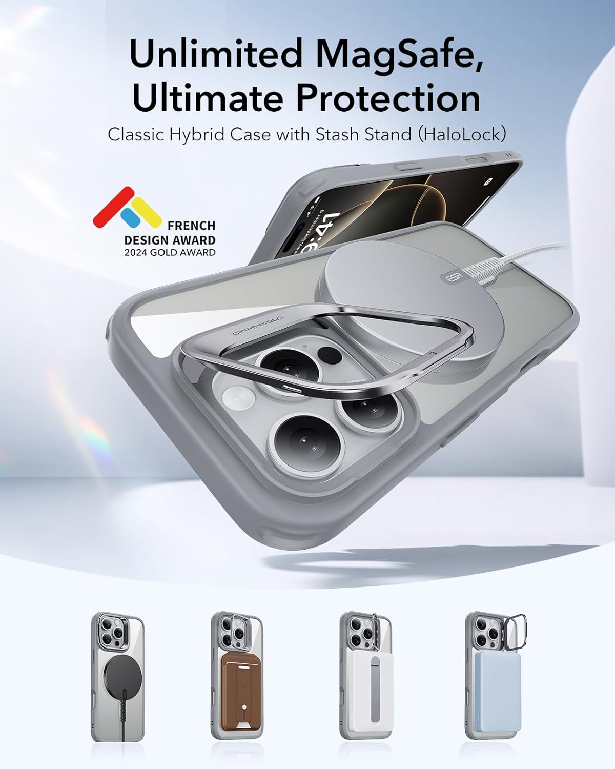ESR калъф за iPhone 16 Pro с управление на камерата, съвместим с Magsafe, защитен калъф за мобилен телефон по военен стандарт, калъф за iPhone 16 Pro, вградена стойка, устойчив на надраскване гръб