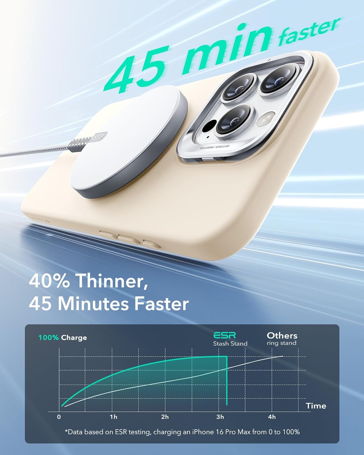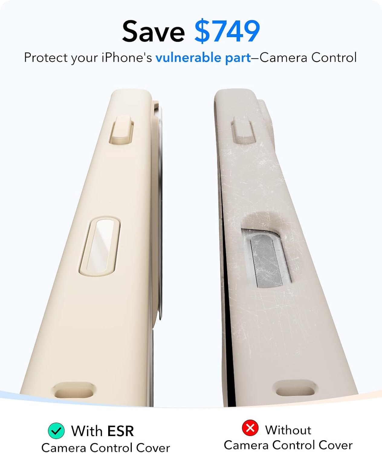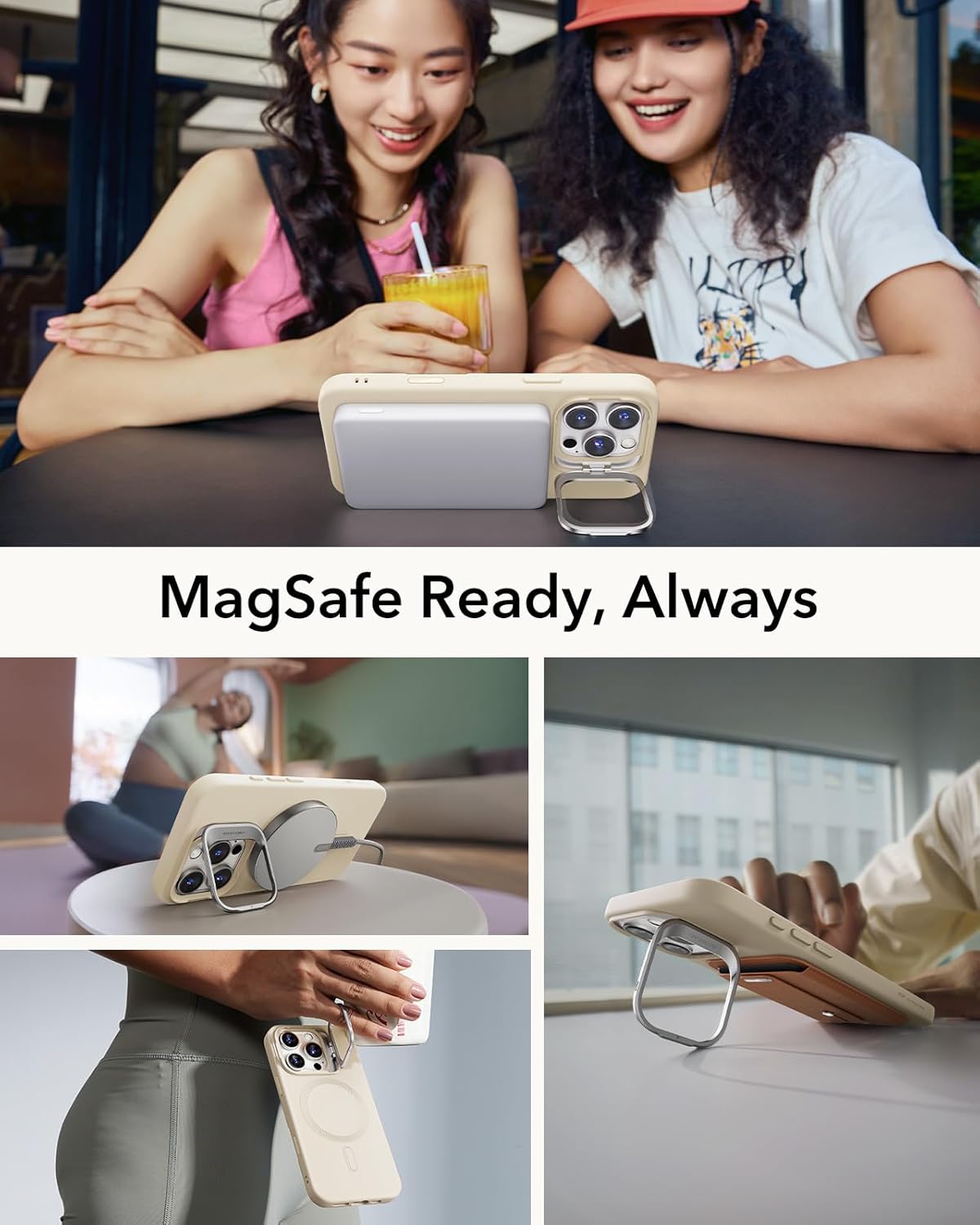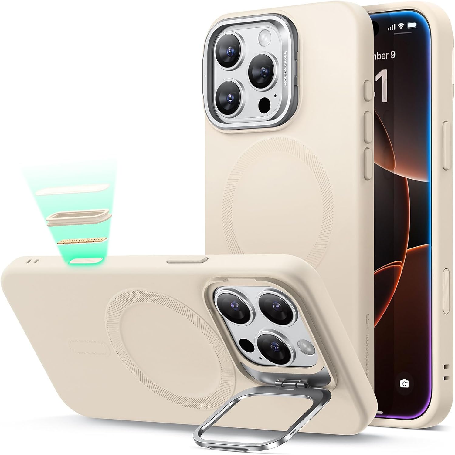 ESR Калъф за iPhone 16 Pro, Силиконов калъф със стойка, Съвместим с MagSafe, Вградена стойка за камера, Магнитен калъф за телефон за iPhone 16 Pro, Серия Cloud, Бежов
