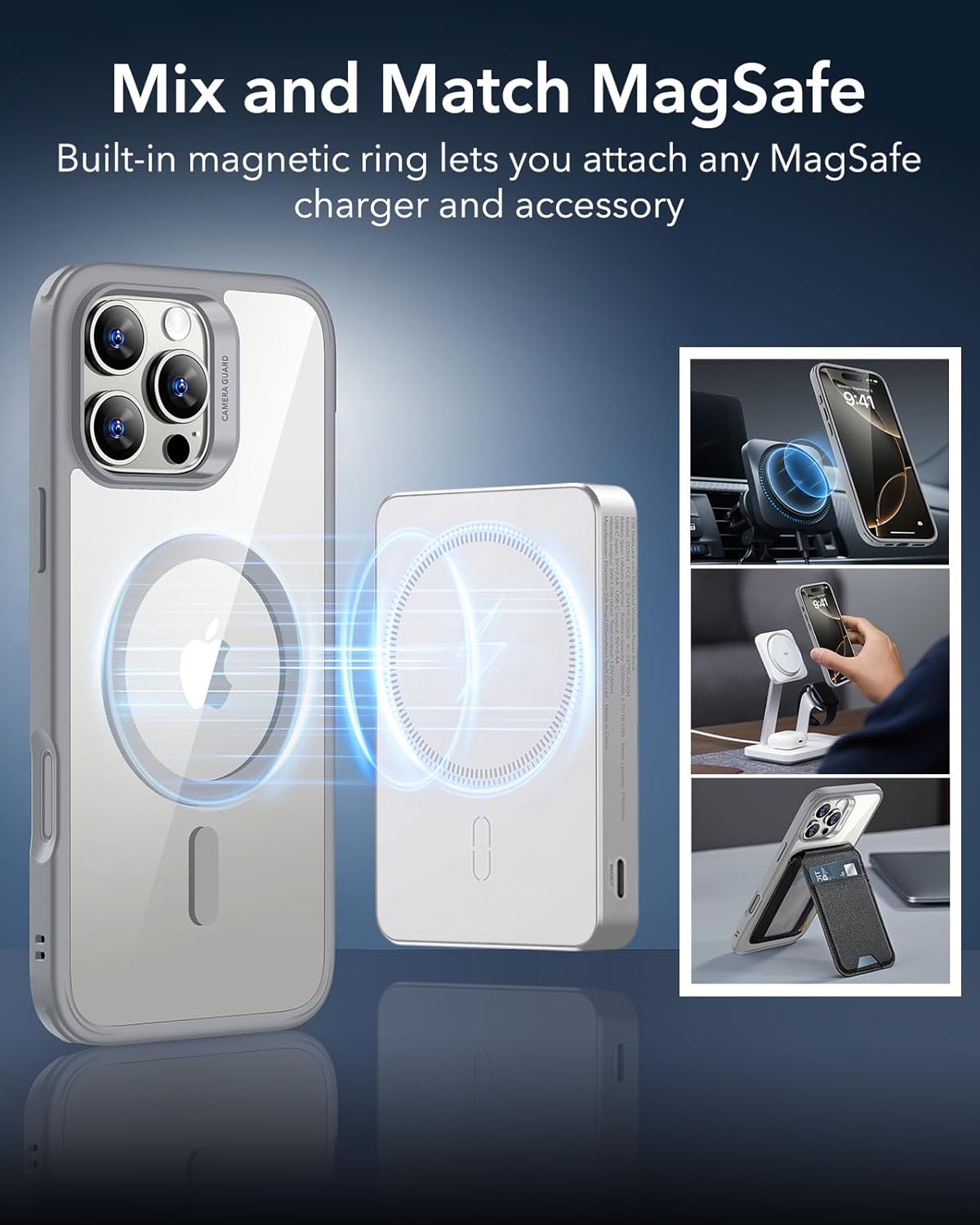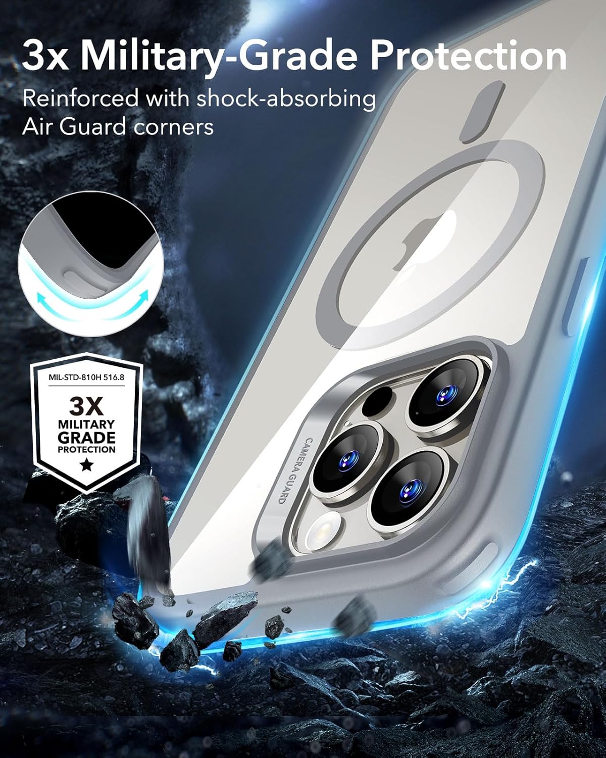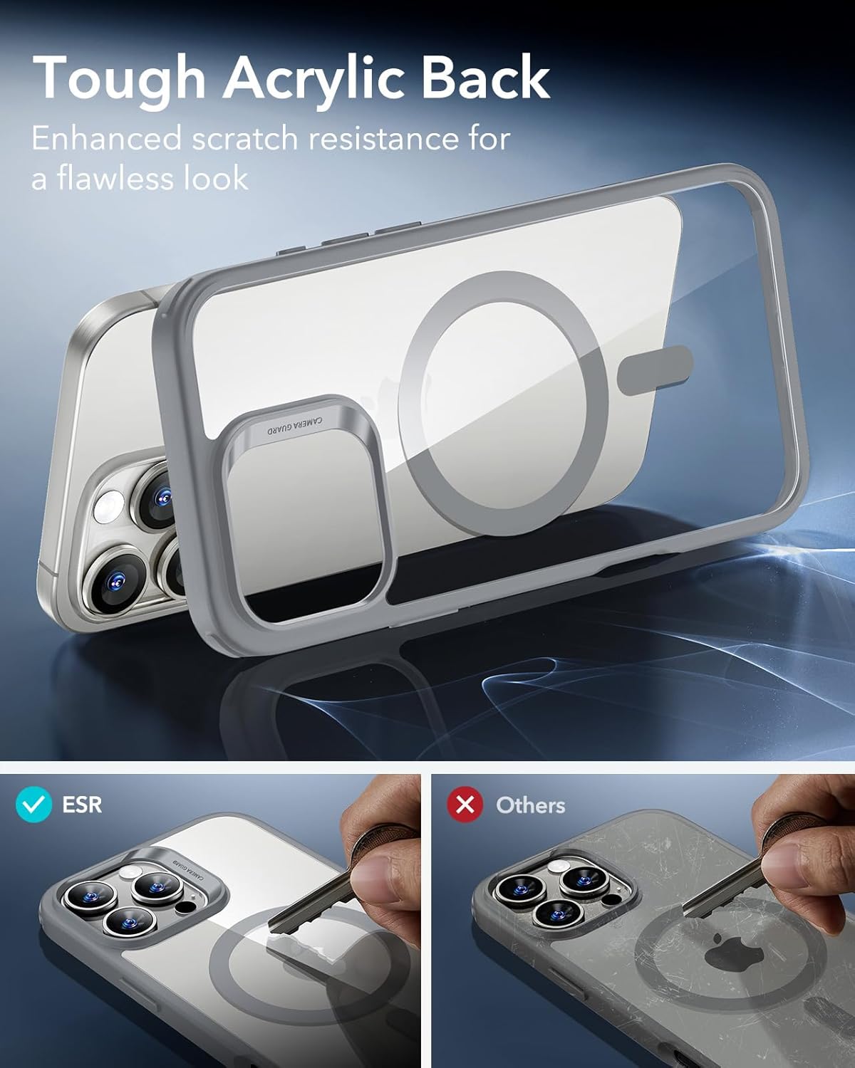 ESR калъф за iPhone 16 Pro, съвместим с MagSafe, военна стандартна защита, устойчив на пожълтяване, устойчив на надраскване гръб, магнитен калъф за мобилен телефон за iPhone 16 Pro, прозрачно сив