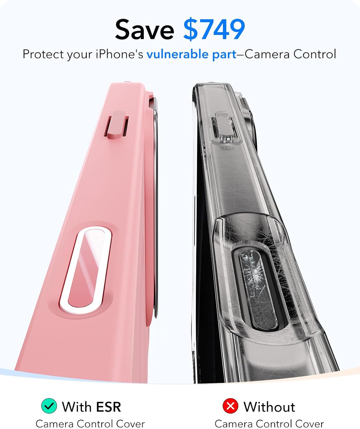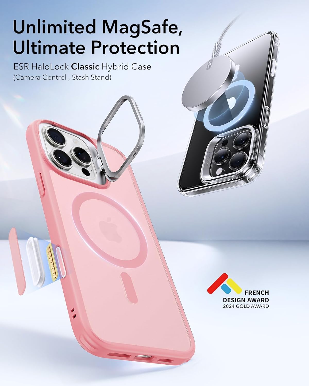 ESR калъф за iPhone 16 Pro, съвместим с MagSafe, защитен калъф по военен стандарт, вградена скрита стойка, калъф за мобилен телефон, устойчив на надраскване гръб, серия Classic, прозрачен розов