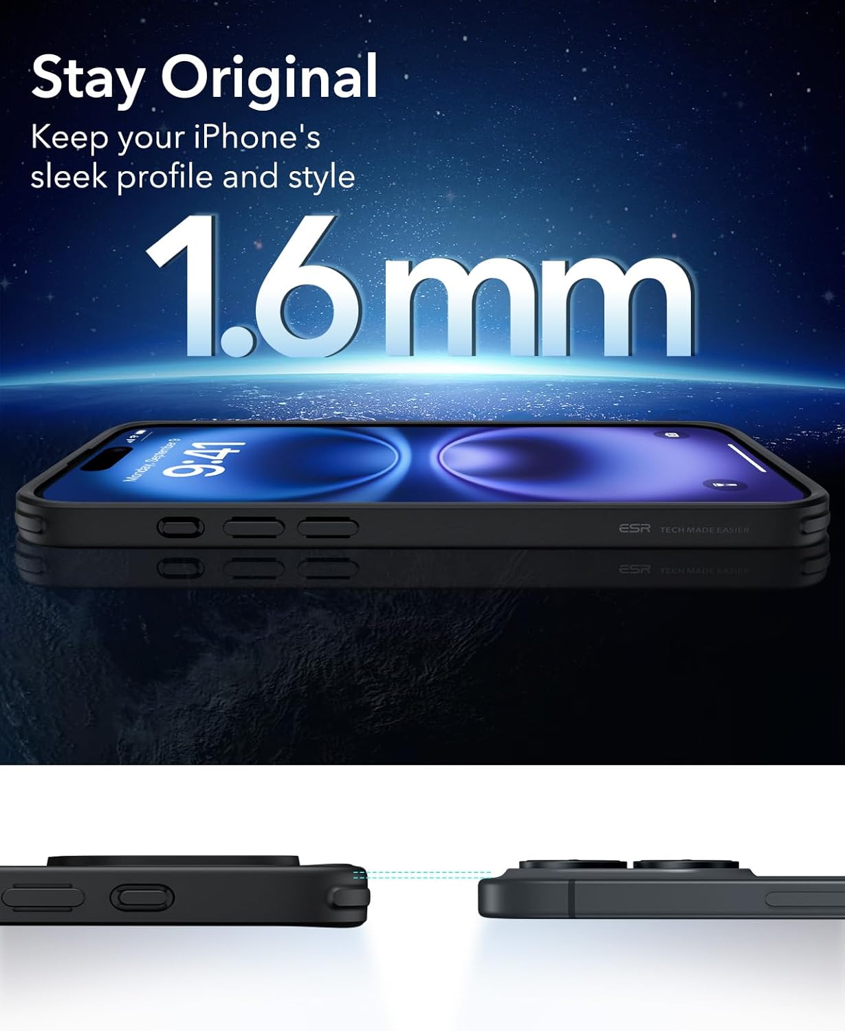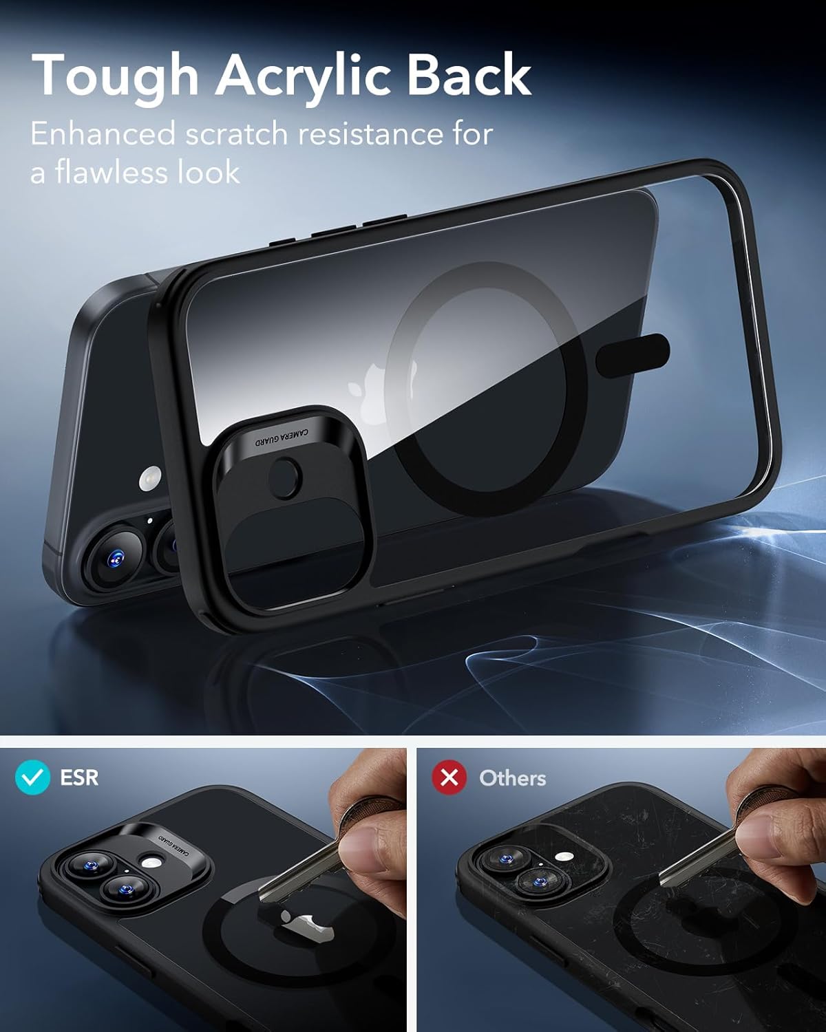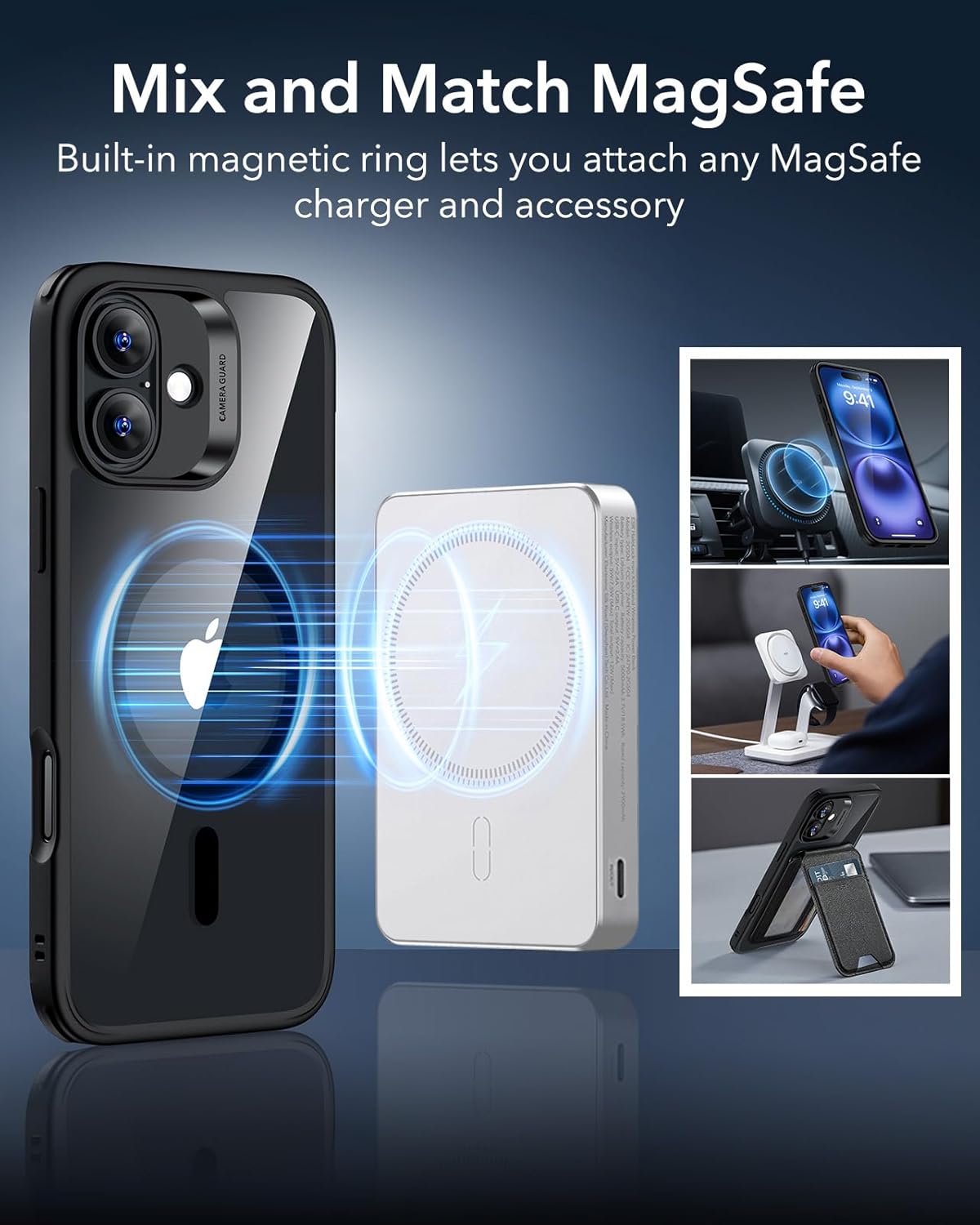 ESR калъф за iPhone 16, съвместим с MagSafe, удароустойчив, военен стандарт за защита, магнитен калъф за iPhone 16, класически хибриден калъф (HaloLock), прозрачен черен