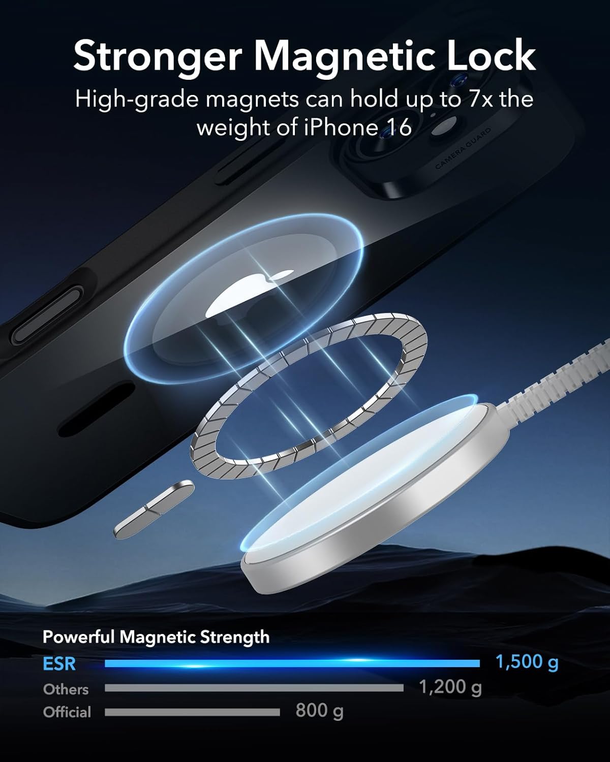 • Магнитна сила от 1500 g - ултрастабилни: Нашите специални магнити с водеща в индустрията сила на задържане от 1500 g закрепват аксесоарите MagSafe за мобилен телефон iPhone 17 дори по време на дейности на открито - независимо дали става въпрос за бягане по пътеки, стълбове и камъни или за неравни пътища. Магнитният композит е толкова стабилен, че зарядните устройства, дръжките или държачите не се плъзгат дори при най-силните удари, като същевременно позволяват лесно отстраняване с лек натиск.