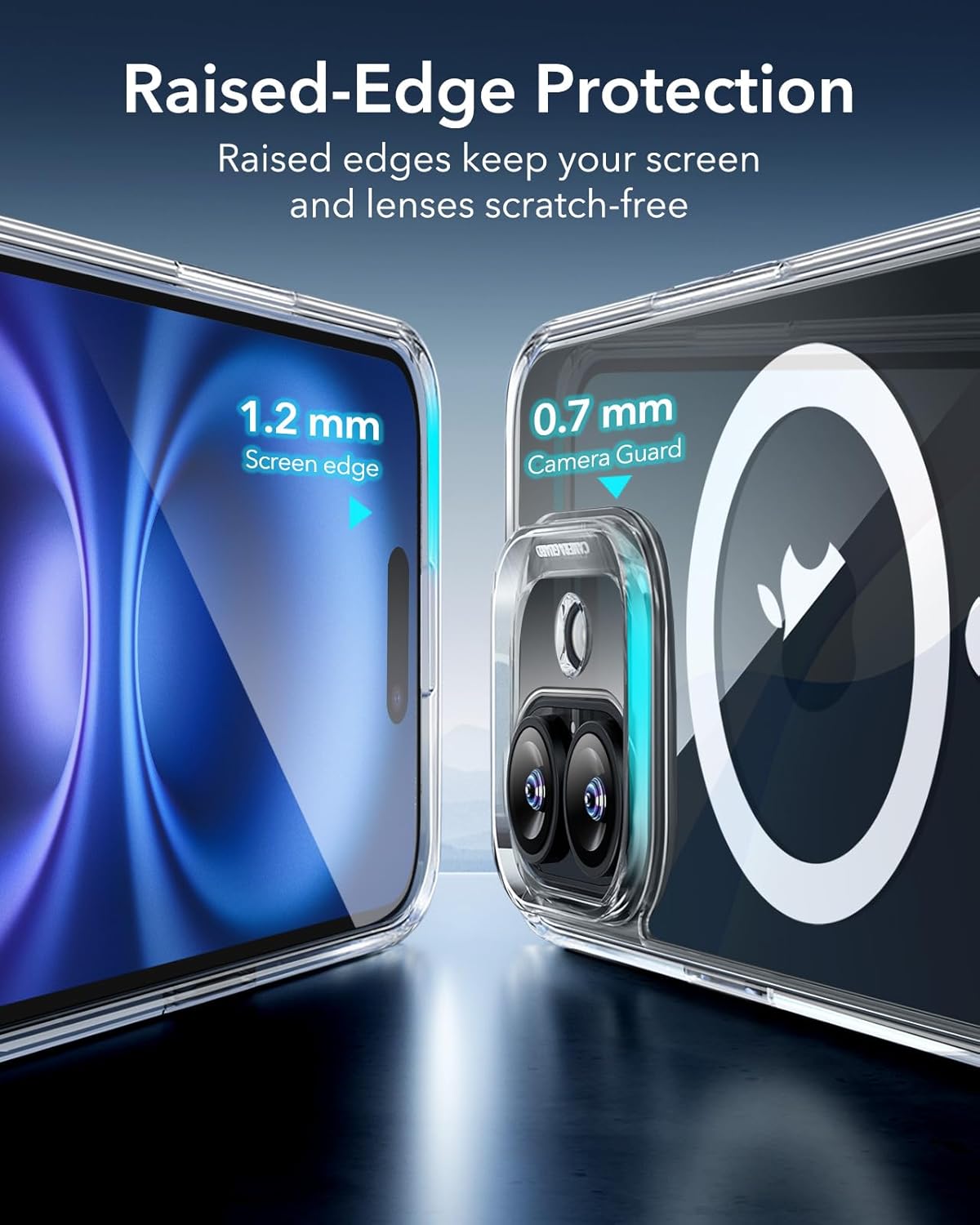• [Повишена цялостна защита за дисплея и камерата] за калъф за iPhone 17 с MagSafe: повдигнатите ръбове на дисплея и рамката на обектива, предпазваща камерата от всички страни, не само осигуряват подобрена защита от надраскване, но и ефективно предпазват от повреда на дисплея и обектива на камерата в случай на изпускане - независимо дали е изпуснат случайно от масичката за кафе или е силно ударен върху каменен под.
