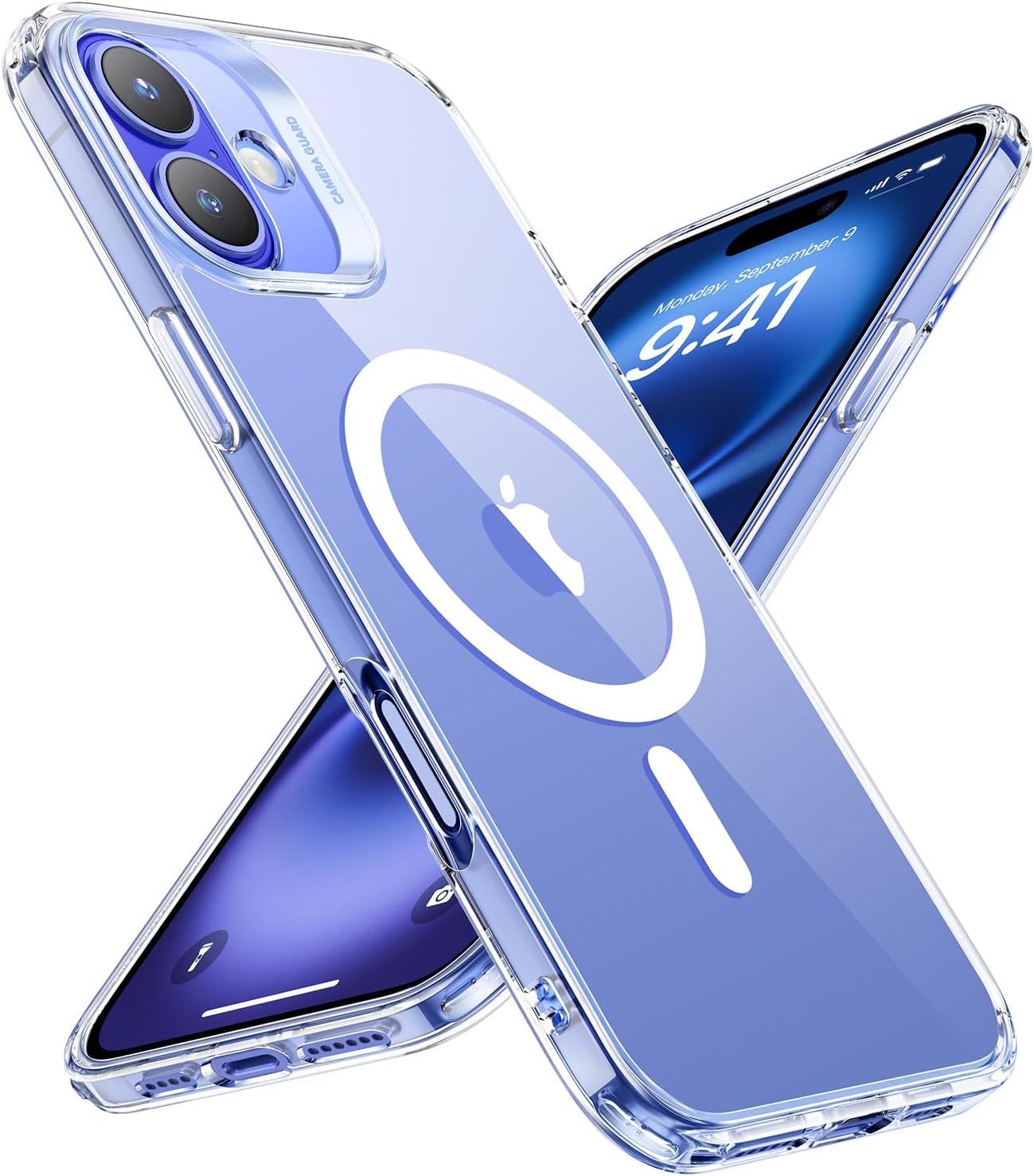 ESR калъф за iPhone 16, съвместим с MagSafe, удароустойчив защитен калъф по военен стандарт, устойчив на жълто, устойчив на надраскване гръб, магнитен калъф за мобилен телефон за iPhone 16, прозрачен