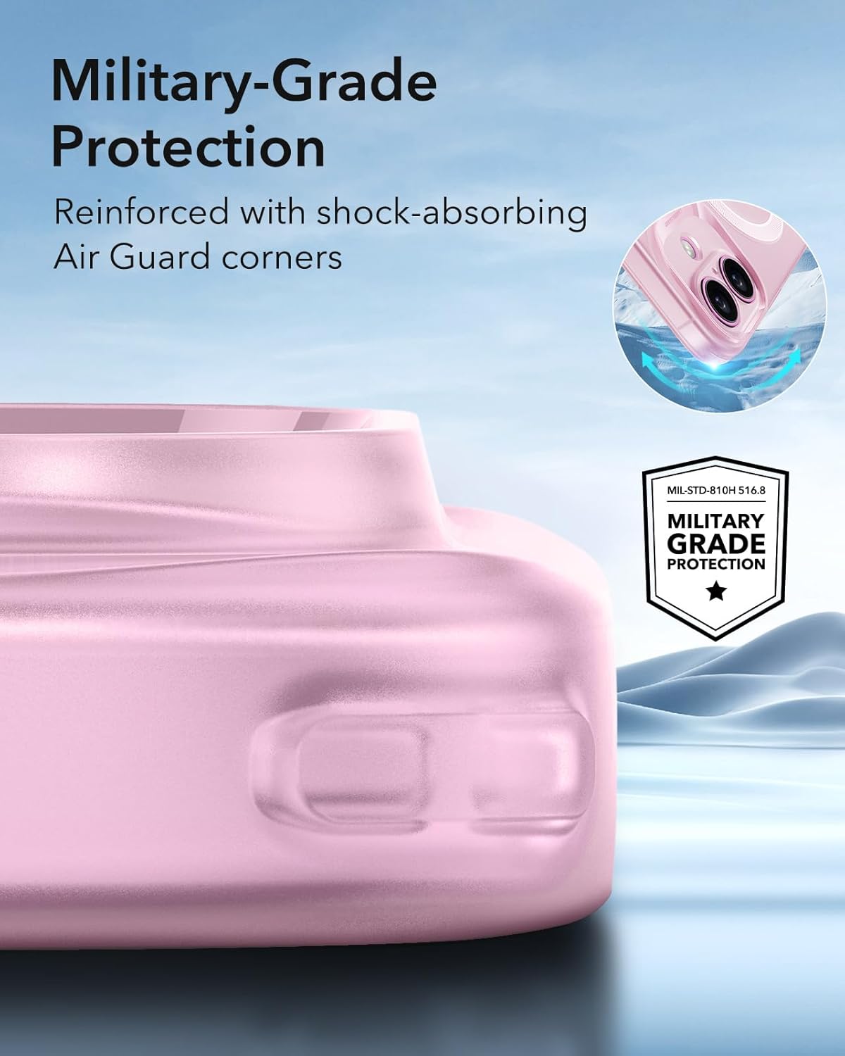 • Защита, където е важна: Ъглите на Air Guard абсорбират удари и падания, така че телефонът ви да не се повреди, докато повдигнатите ръбове на дисплея и предпазителят на камерата предпазват от надраскване.