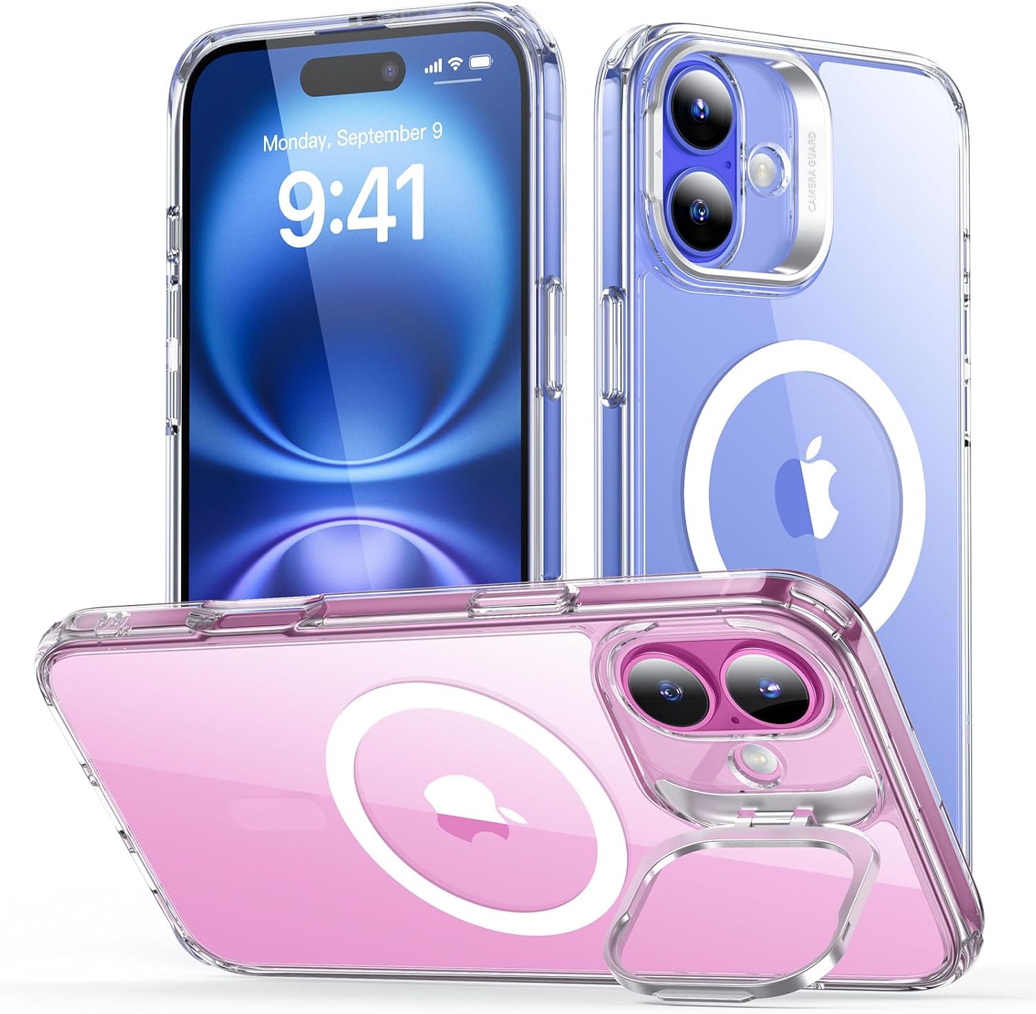 ESR калъф за iPhone 16, съвместим с MagSafe [Здрава стойка], сертифициран военен защитен калъф за мобилен телефон с скрита стойка за iPhone 16, здрав, удароустойчив, устойчив на надраскване защитен калъф, прозрачен