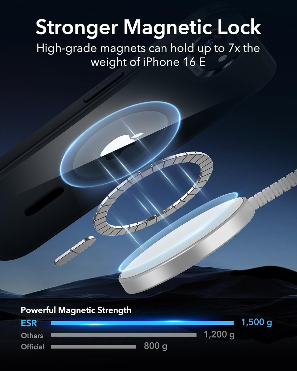 • Магнитна сила от 1500 g - ултрастабилни: Нашите специални магнити с водеща в индустрията сила на задържане от 1500 g закрепват аксесоарите MagSafe за мобилен телефон iPhone 17 Pro дори по време на дейности на открито - независимо дали става въпрос за бягане по пътеки, стълбове и камъни или за неравни пътища. Магнитният композит е толкова стабилен, че зарядните устройства, дръжките или държачите не се плъзгат дори при най-силните удари, като същевременно позволяват лесно отстраняване с лек натиск.