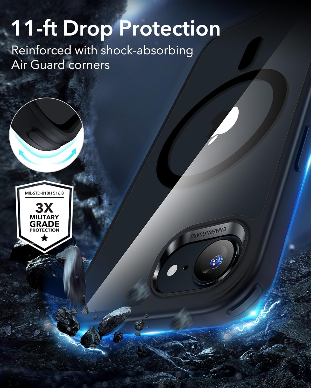 • [Повишена цялостна защита за дисплея и камерата] за калъф за iPhone 17 Pro с MagSafe: повдигнатите ръбове на дисплея и рамката на обектива, предпазваща камерата от всички страни, не само осигуряват подобрена защита от надраскване, но и ефективно предпазват от повреда на дисплея и обектива на камерата в случай на падане - независимо дали е изпуснат случайно от масичката за кафе или е силно ударен върху каменен под.