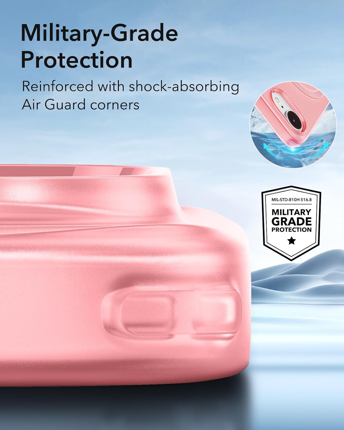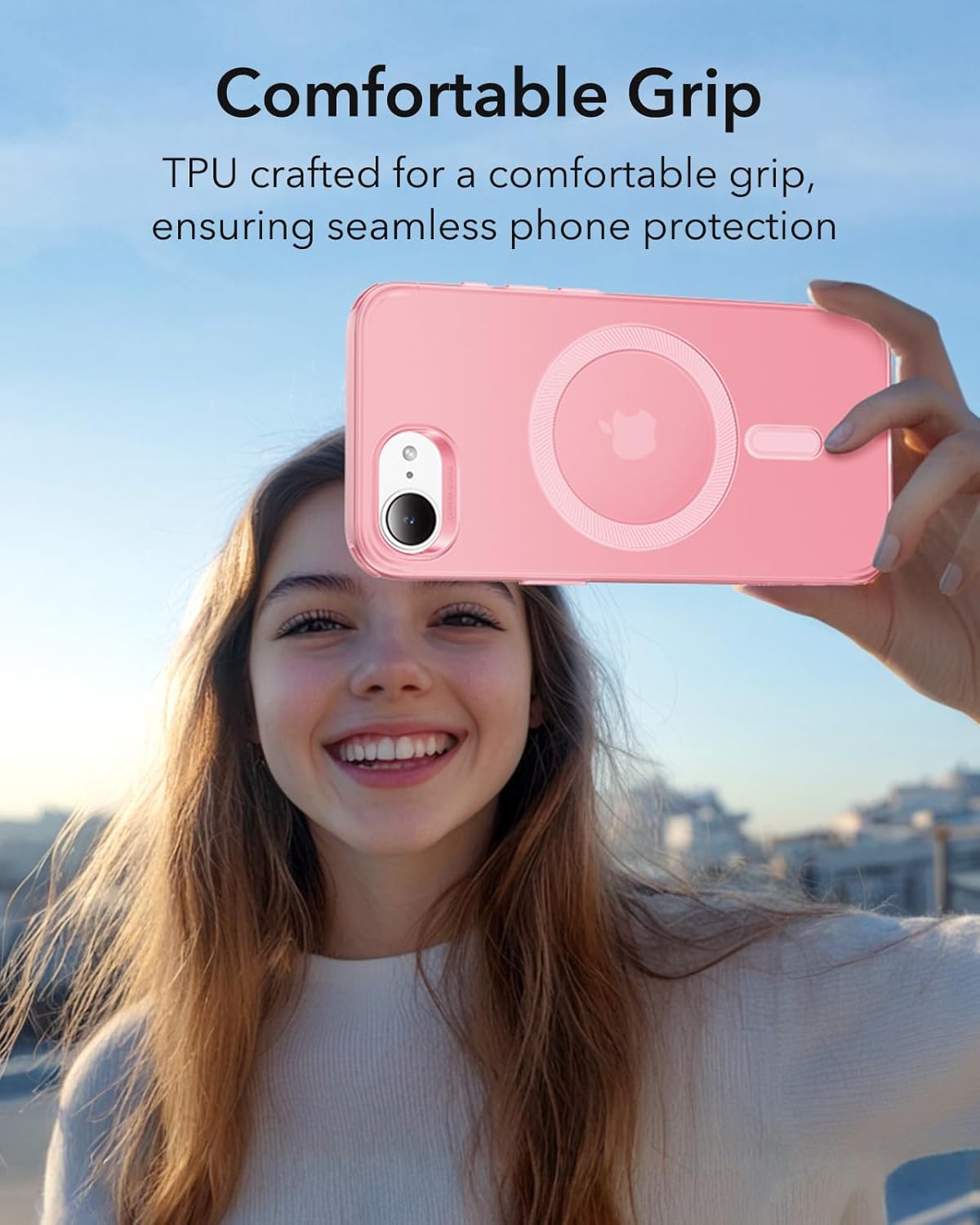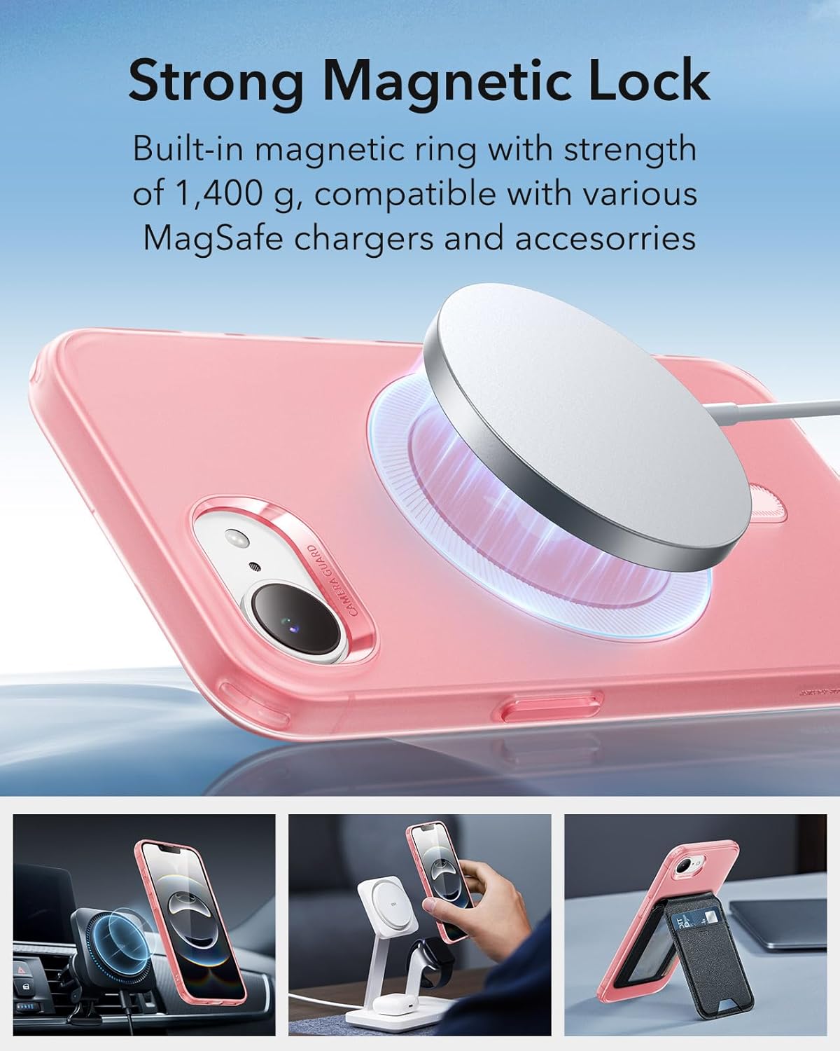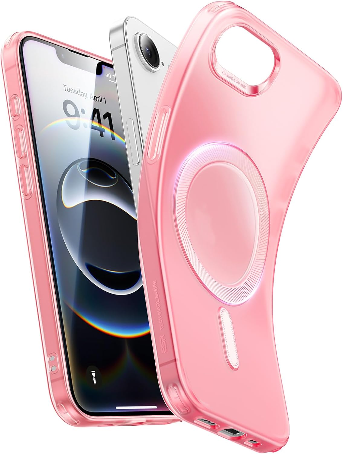 ESR калъф за iPhone 16e, съвместим с MagSafe, защита на камерата, удароустойчив тънък калъф за мобилен телефон за iPhone 16e, устойчив на пожълтяване и надраскване, магнитен силиконов защитен калъф, розов