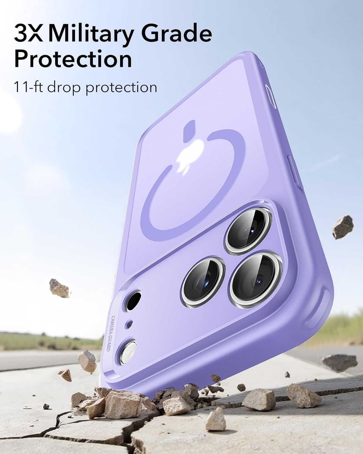 ESR калъф за iPhone 17 Pro Max с бутон за заснемане и управление на камерата, съвместим с Magsafe, калъф за мобилен телефон за iPhone 17 Pro Max, против пожълтяване, сертифицирана военна защита, матово лилав