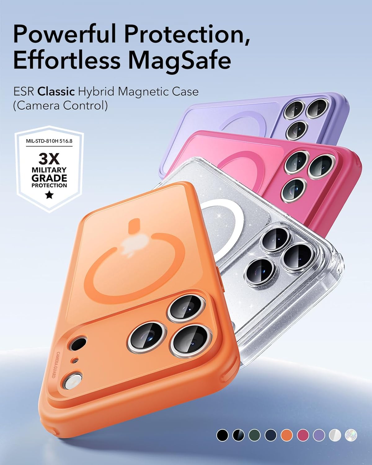 ESR калъф за iPhone 17 Pro Max с бутон за заснемане и управление на камерата, съвместим с Magsafe, калъф за мобилен телефон за iPhone 17 Pro Max, против пожълтяване, сертифицирана военна защита, матово оранжев