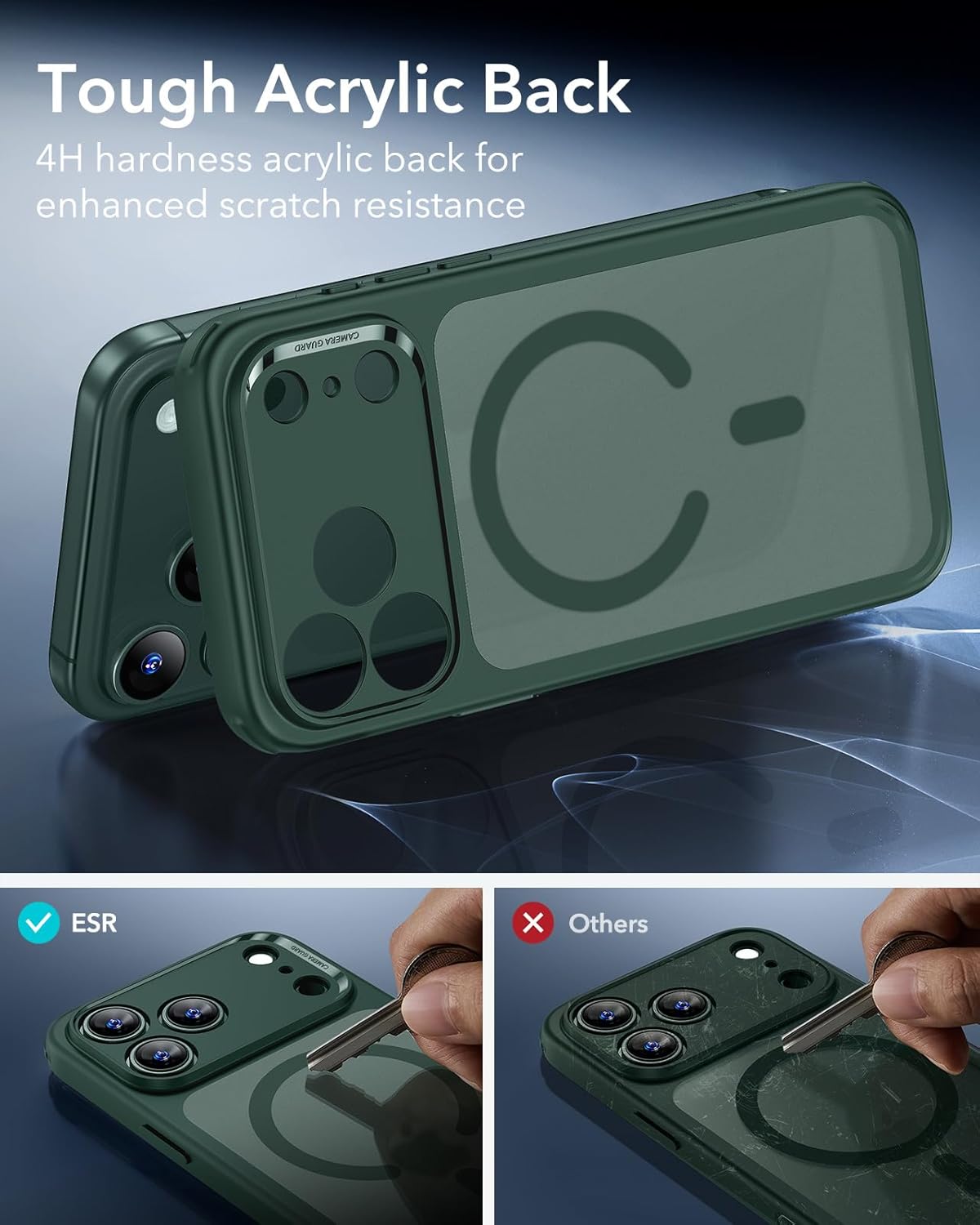 ESR калъф за iPhone 17 Pro Max с бутон за заснемане и управление на камерата, съвместим с Magsafe, калъф за мобилен телефон за iPhone 17 Pro Max, против пожълтяване, сертифицирана военна защита, матово зелен