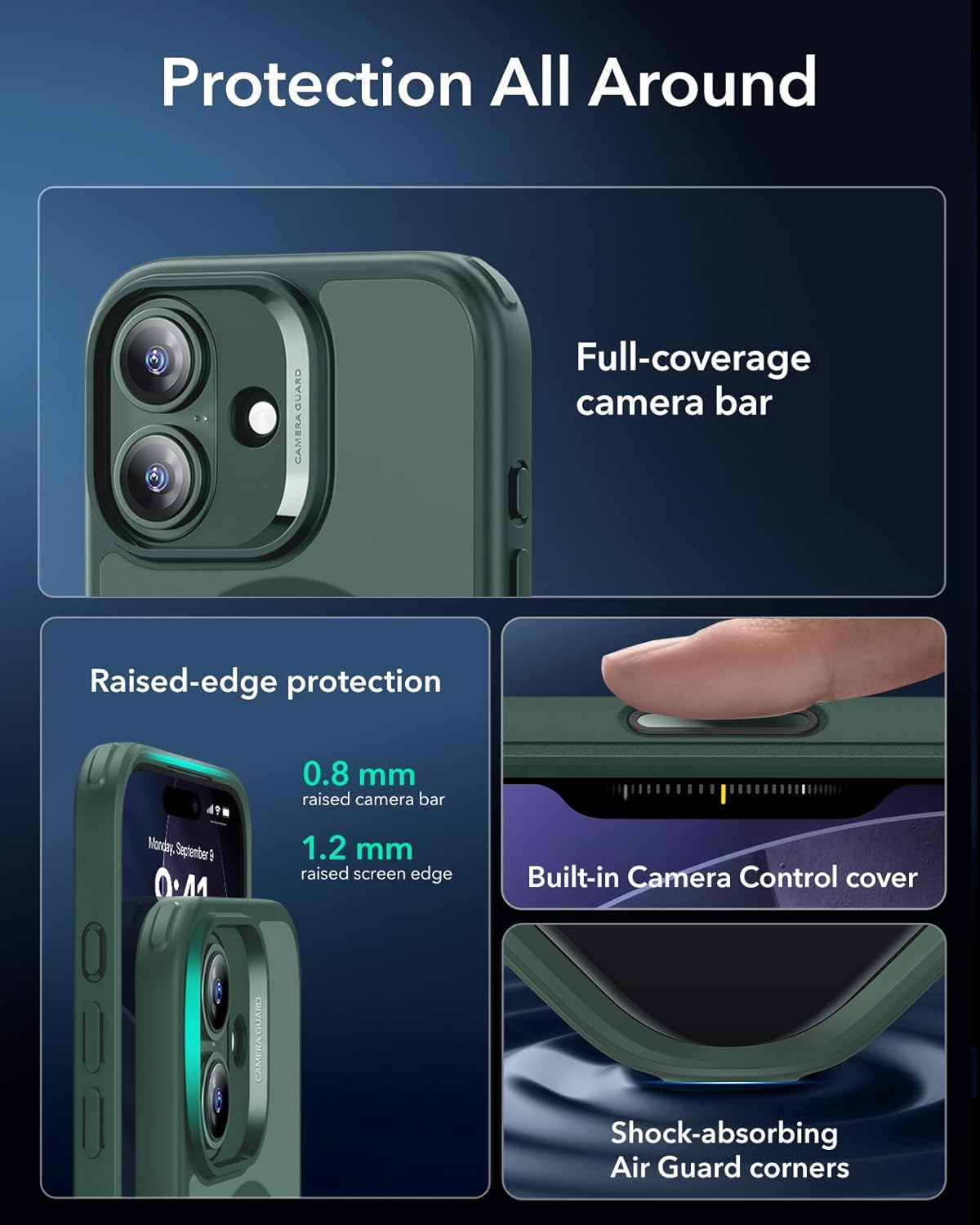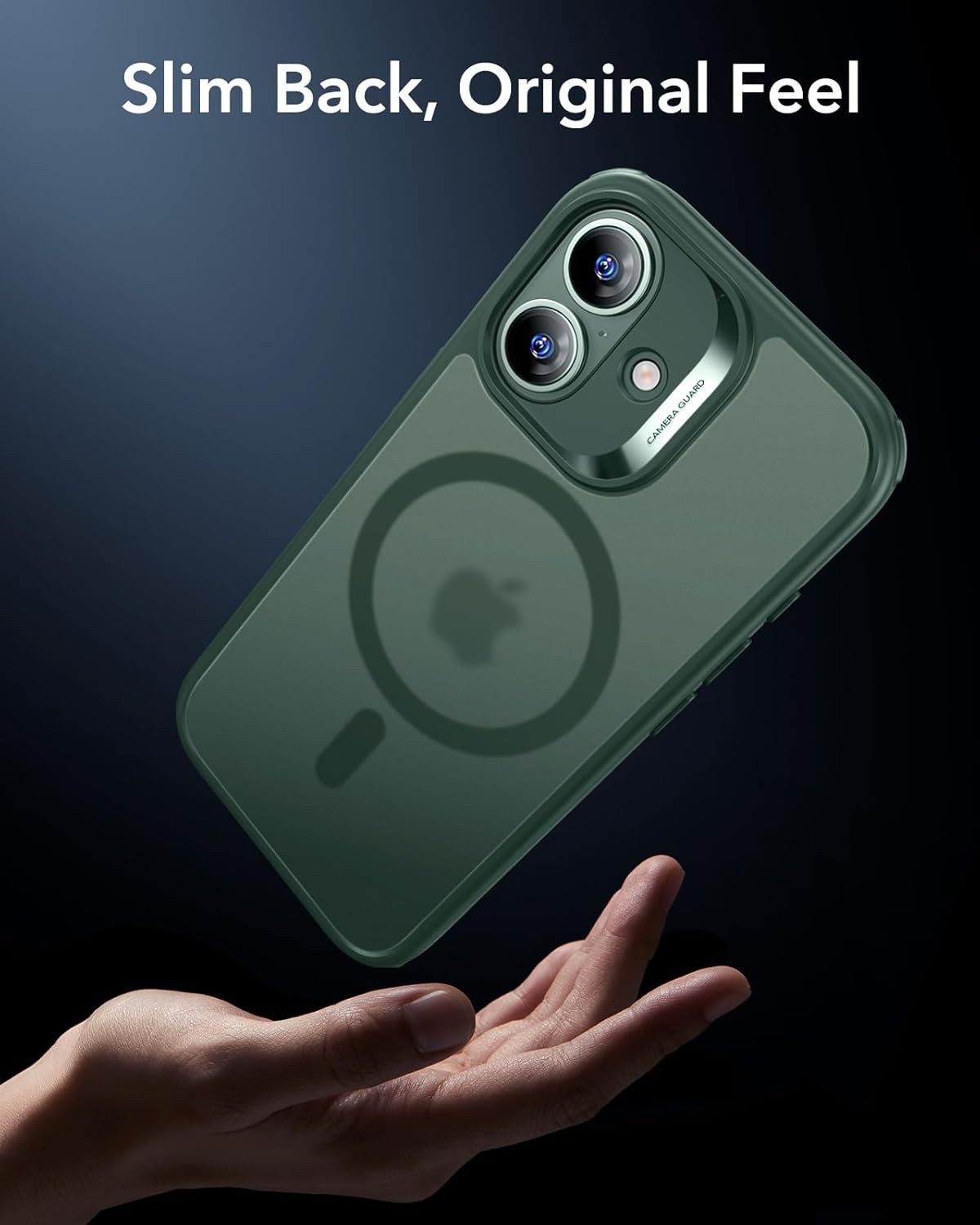 ESR калъф за iPhone 17 с бутон за заснемане и управление на камерата, съвместим с Magsafe, калъф за мобилен телефон за iPhone 17, против пожълтяване, сертифицирана военна защита, здрава удароустойчивост, матово зелено