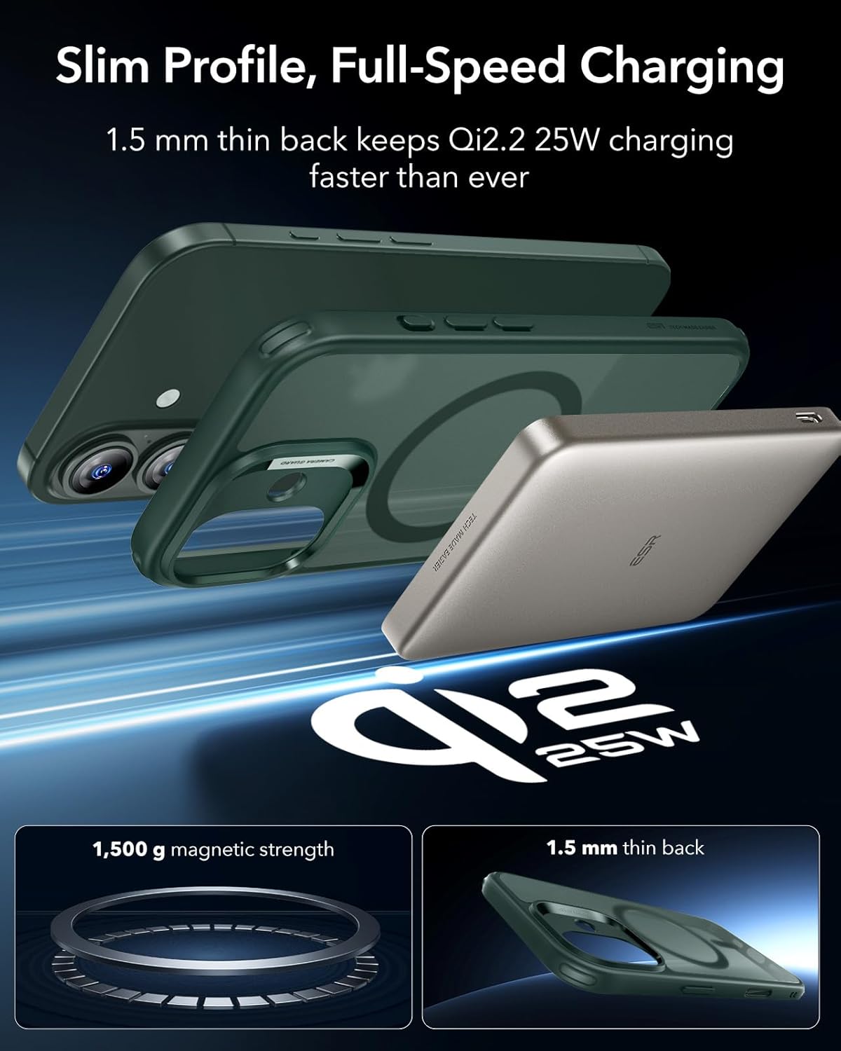 • Магнитна сила от 1500 g - ултрастабилни: Нашите специални магнити с водеща в индустрията сила на задържане от 1500 g закрепват аксесоарите MagSafe за мобилен телефон iPhone 17 дори по време на дейности на открито - независимо дали става въпрос за бягане по пътеки, стълбове и камъни или за неравни пътища. Магнитният композит е толкова стабилен, че зарядните устройства, дръжките или държачите не се плъзгат дори при най-силните удари, като същевременно позволяват лесно отстраняване с лек натиск.