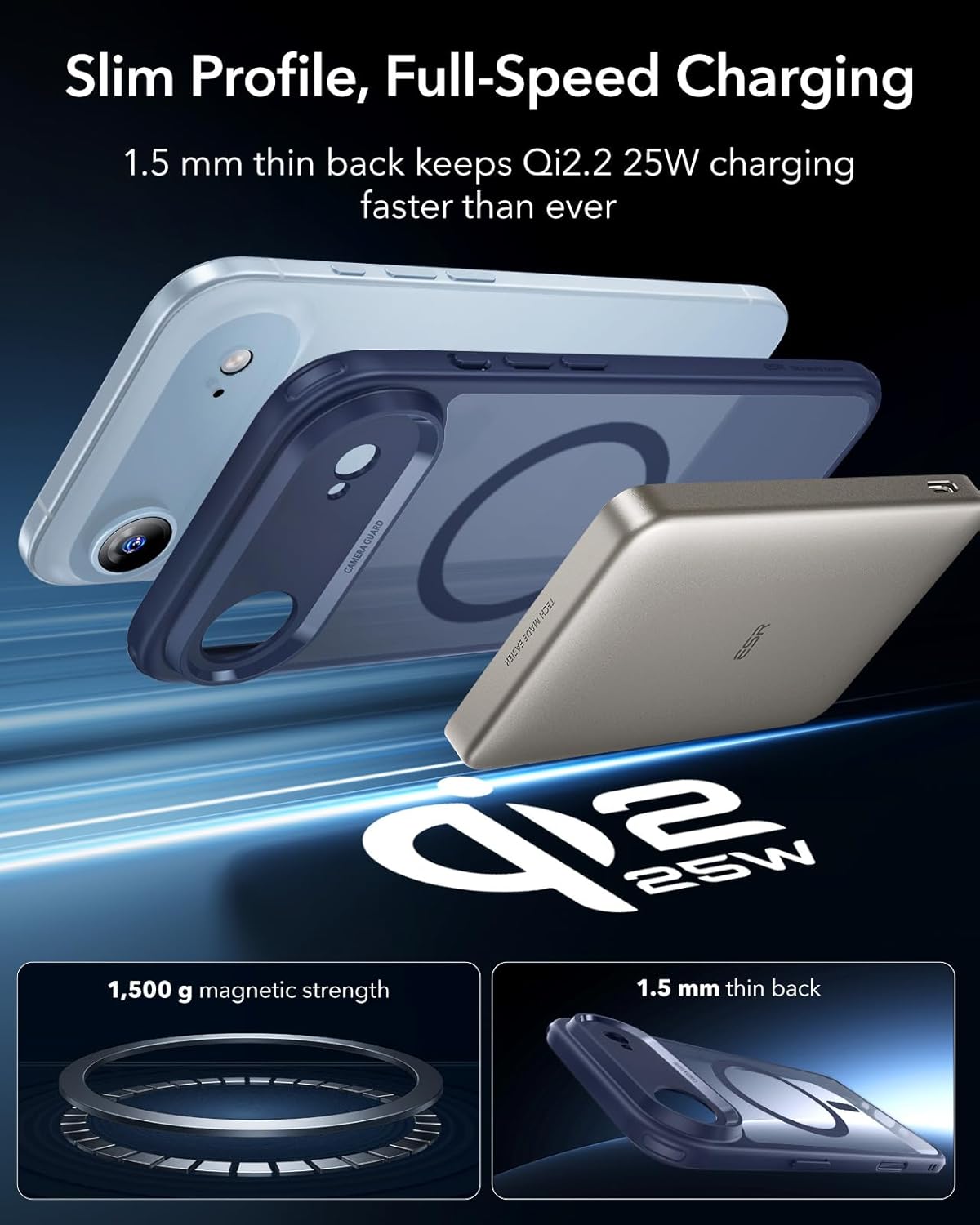 • Магнитна сила от 1500 g - ултрастабилни: Нашите специални магнити с водеща в индустрията сила на задържане от 1500 g закрепват аксесоарите MagSafe за мобилен телефон iPhone 17 Pro дори по време на дейности на открито - независимо дали става въпрос за бягане по пътеки, стълбове и камъни или за неравни пътища. Магнитният композит е толкова стабилен, че зарядните устройства, дръжките или държачите не се плъзгат дори при най-силните удари, като същевременно позволяват лесно отстраняване с лек натиск.