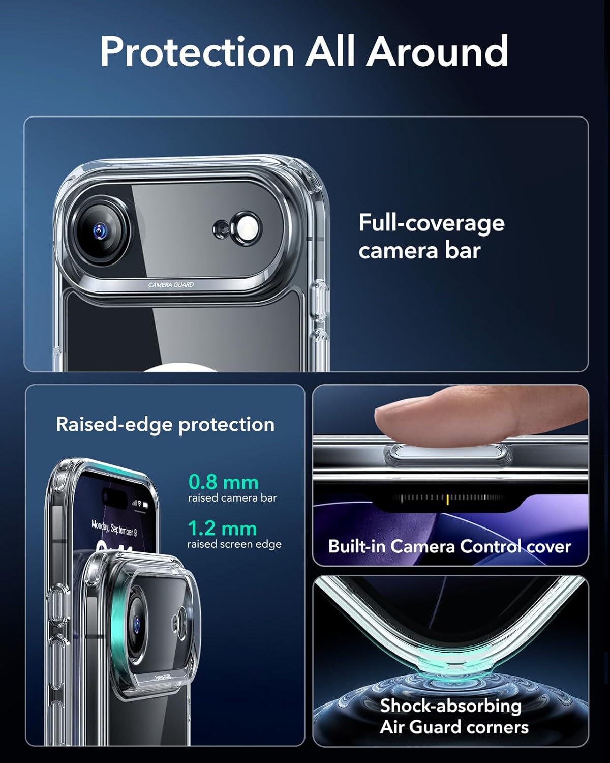 ESR калъф за iPhone Air с бутон за заснемане и управление на камерата, съвместим с Magsafe, калъф за мобилен телефон за iPhone 17 Air, против пожълтяване, сертифицирана военна защита, здрава удароустойчивост, прозрачен