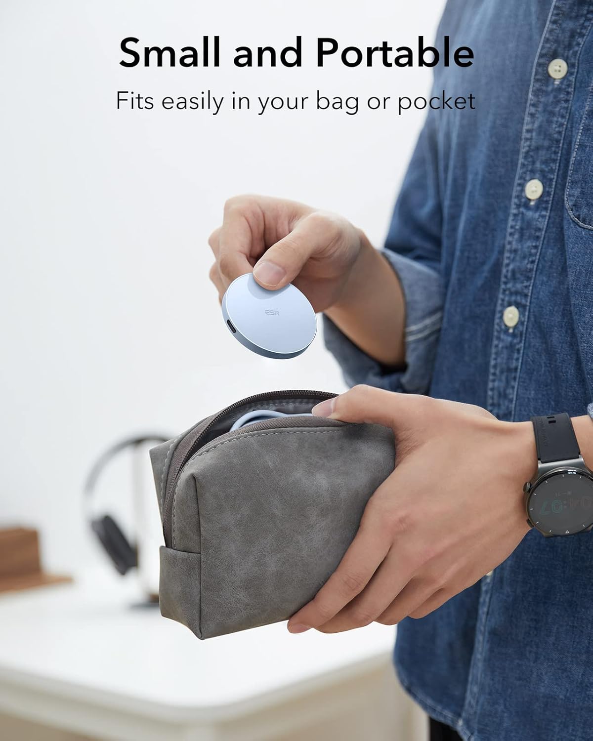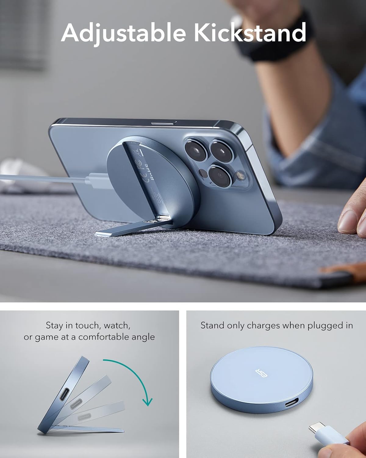 ESR за Magsafe Charger, безжично зарядно устройство със стойка за iPhone 17/16/16 Pro/16 Pro Max/15/14/13, AirPods 4/3/2 Pro, индуктивна зарядна станция с 1,5 м подсилен найлонов кабел, синьо (без захранване)