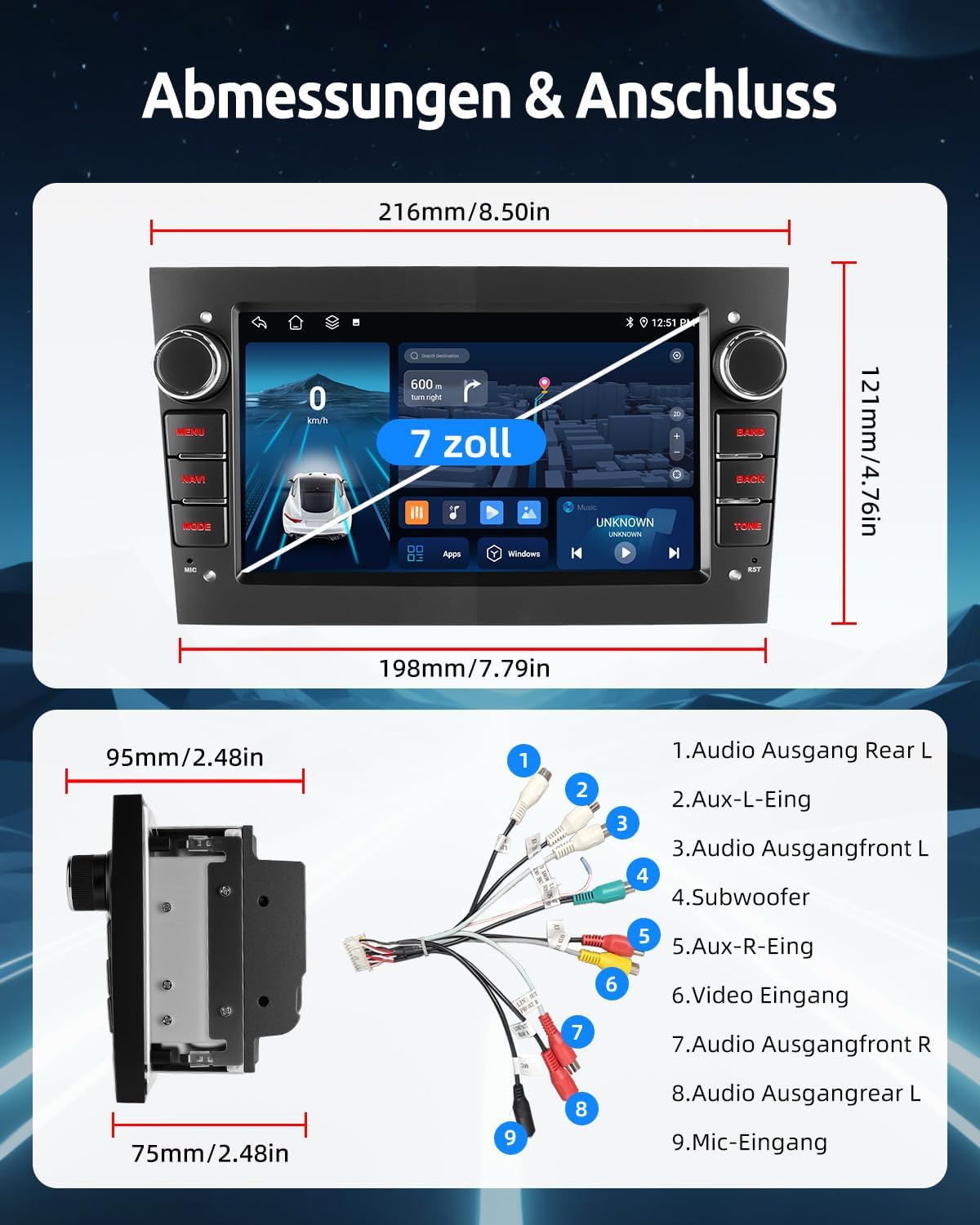 • Приложими модели: Това автомобилно радио е специално проектирано за Astra (2004-2009), Antara (2006-2011), Vectra (2003-2008), Corsa (2006-2011), Zafira (2005-2011), Meriva (2006-2011). 11)、Vivara (2006-2010), Vivaro (2006-2010), Combo (2004-2011), Signum (2003-2011), Tigra с двоен покрив (2004-2011). Ако вашият автомобил не е включен в тези модели, можете да ни изпратите вашия модел и година на производство, за да попитате.