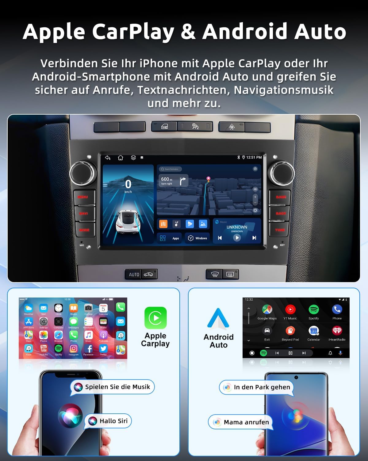 • Essgoo Unterstützt CarPlay und Android Auto mit sowohl kabelgebundener als auch kabelloser Verbindung über USB oder Bluetooth. Dadurch können Sie bequem Anrufe entgegennehmen, Textnachrichten senden und empfangen, navigieren sowie Musik hören – und die Fahrsicherheit wird verbessert.