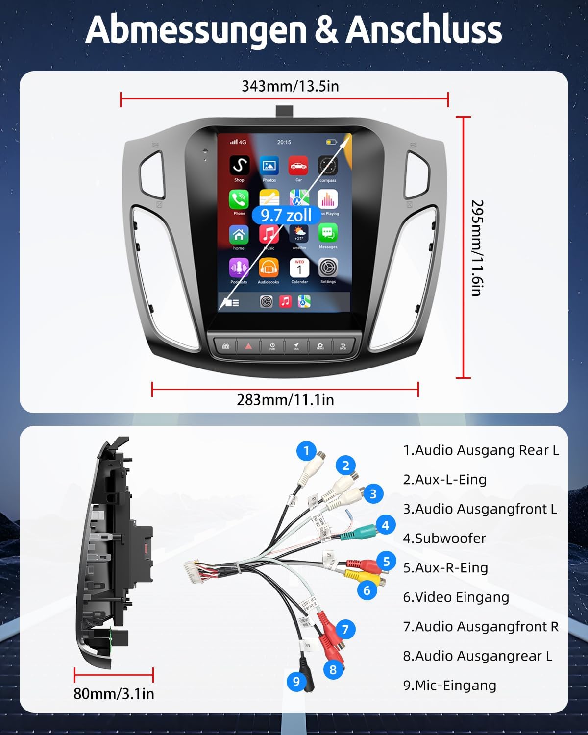 • Приложими модели: 9,7-инчовото Android автомобилно радио е специално проектирано за Ford Focus 2012-2018. С 2GB RAM и 64GB ROM можете да изтегляте любимите си приложения и видеоклипове и да оставите скуката зад гърба си! Можете да ни изпратите модела и годината на производство на вашия автомобил по всяко време, за да можем да намерим подходящия продукт за вас.