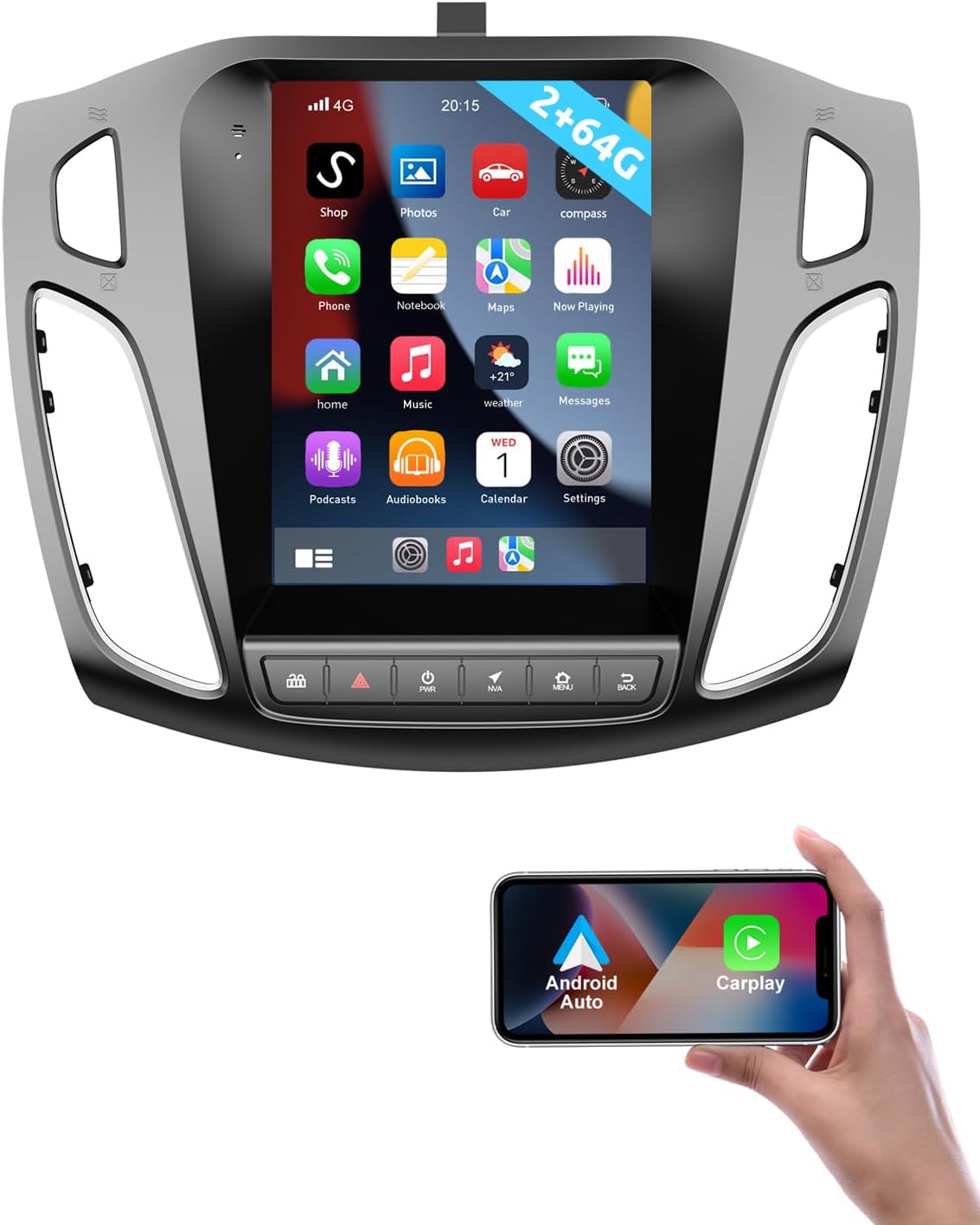 ESSGOO 2+64G безжично Carplay и Android автомобилно радио за Ford Focus Mk3 2012-2018, 9.7-инчово 1080P сензорно автомобилно радио с Bluetooth FM RDS GPS USB WiFi
