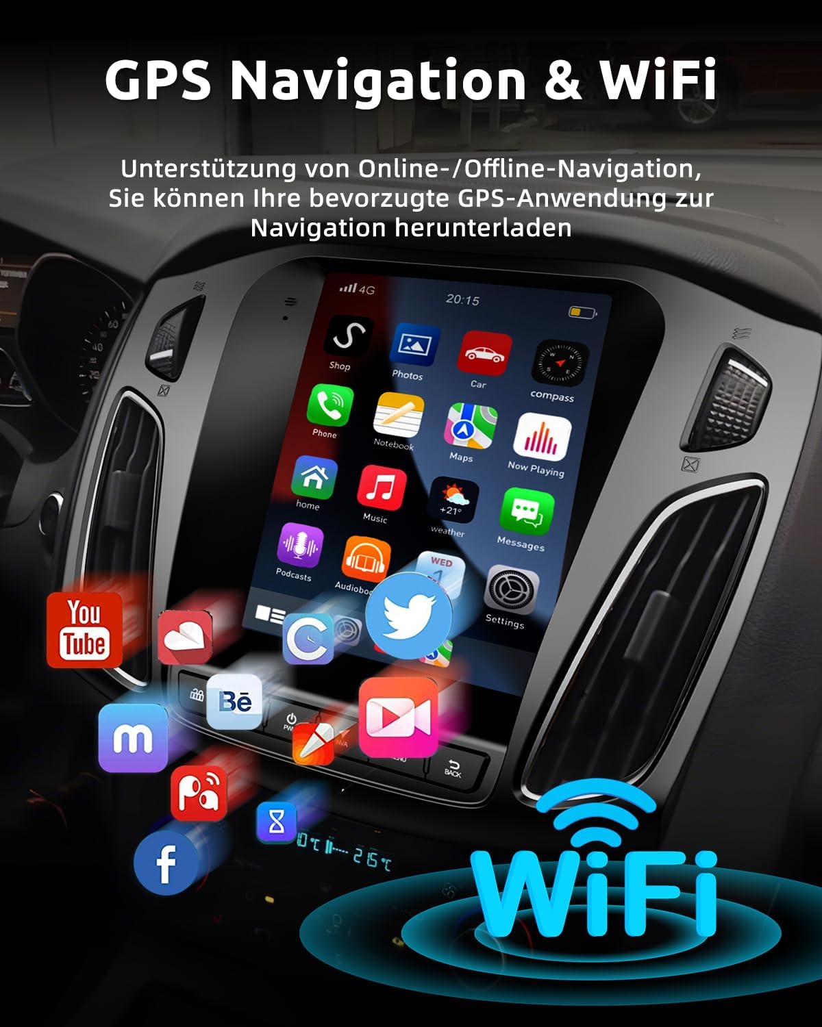 • Безжичен CarPlay и Android Car & Screen Mirroring: Поддържа безжичен CarPlay и Android Car за безпроблемна връзка със смартфон и сигурен достъп до разговори, съобщения, навигация и музика. Гласово или сензорно управление за интуитивна и удобна работа - за по-безопасно шофиране. Функцията за огледален екран ви позволява да качвате съдържанието на телефона си в автомобилното радио Focus, за да гледате видеоклипове и да използвате GPS навигация.