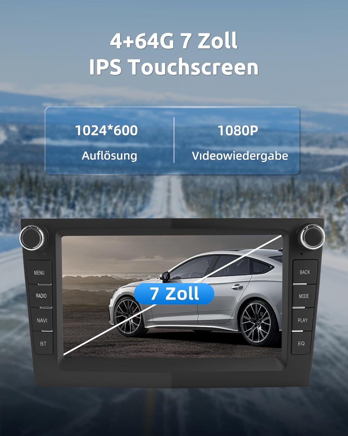 1. System & Konfiguration: 7-Zoll-Display, Android 14, 4 GB RAM, 64 GB ROM, Plug & Play.