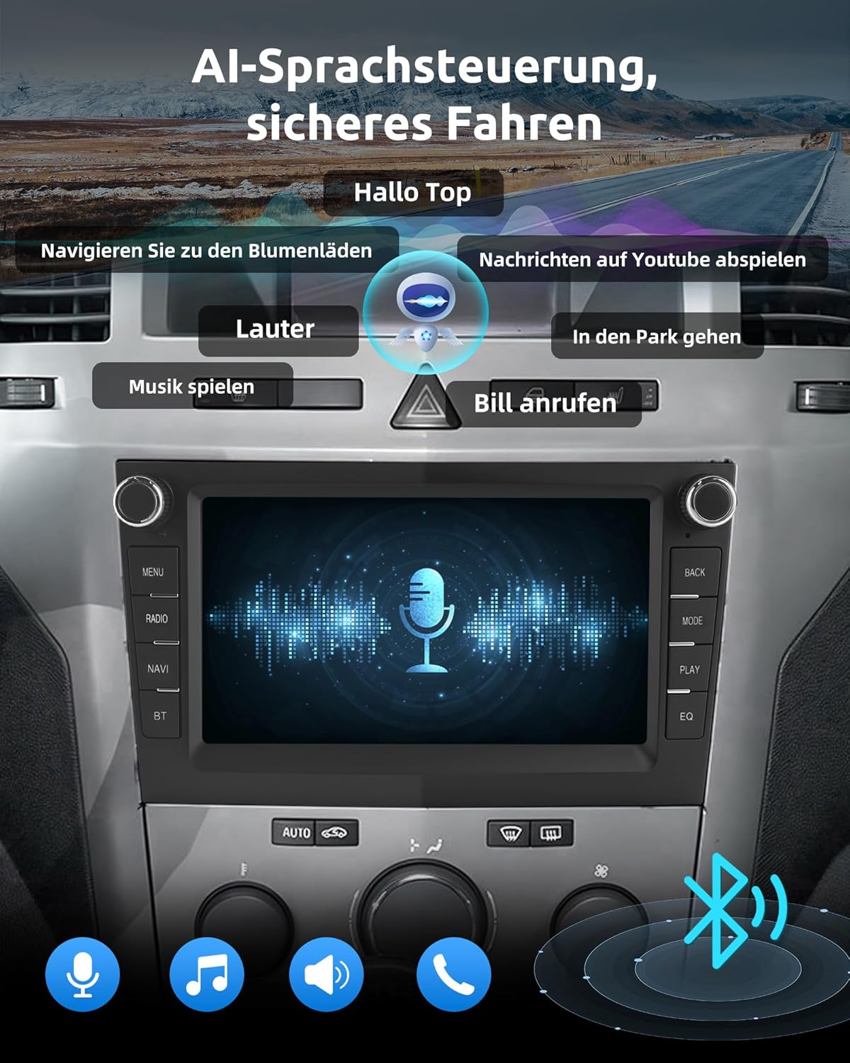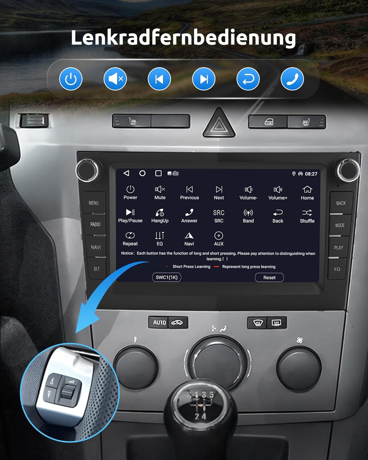 Lenkradsteuerung: Wählen Sie Ihre Lieblingssender, passen Sie die Lautstärke an oder nehmen Sie Anrufe entgegen, ohne die Hände vom Lenkrad nehmen zu müssen. Bietet Ihnen ein komfortableres, sichereres und entspannteres Fahrerlebnis.