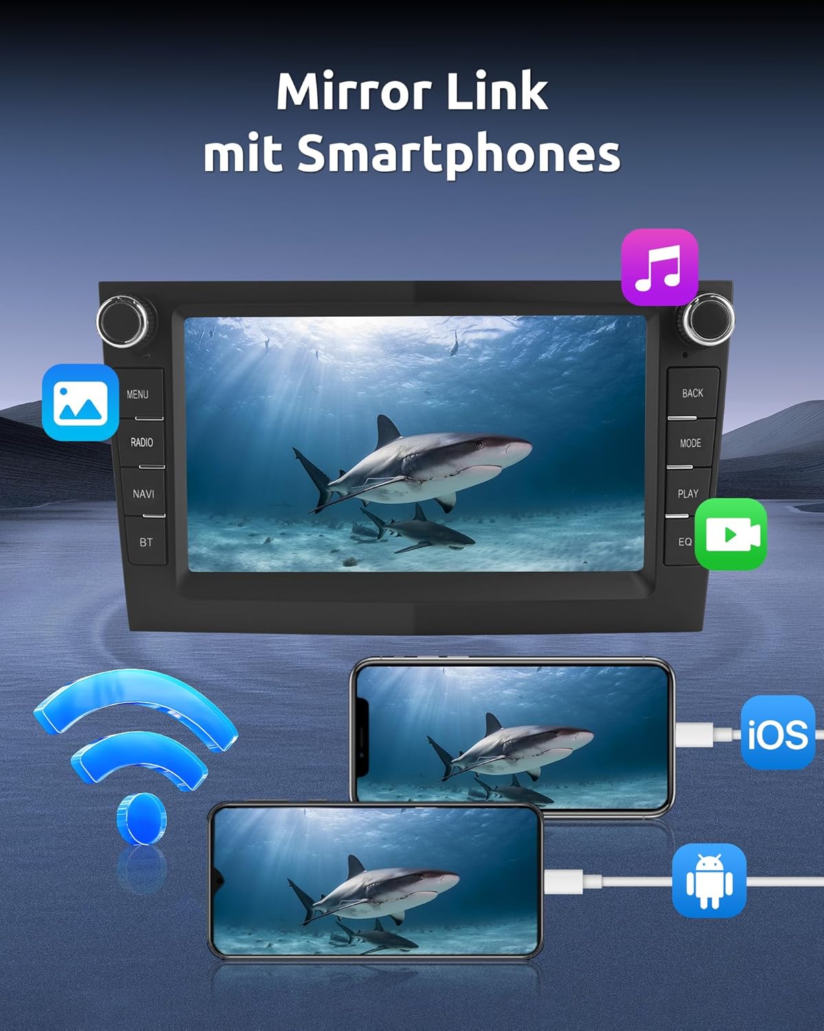 MirrorLink: Unterstützt die sichere und bequeme Nutzung von Smartphone-Anwendungen direkt auf dem Bildschirm des Autoradios. Die Bildschirmspiegelung spiegelt Ihr Smartphone-Display, sodass Sie es während der Fahrt einfach bedienen können.