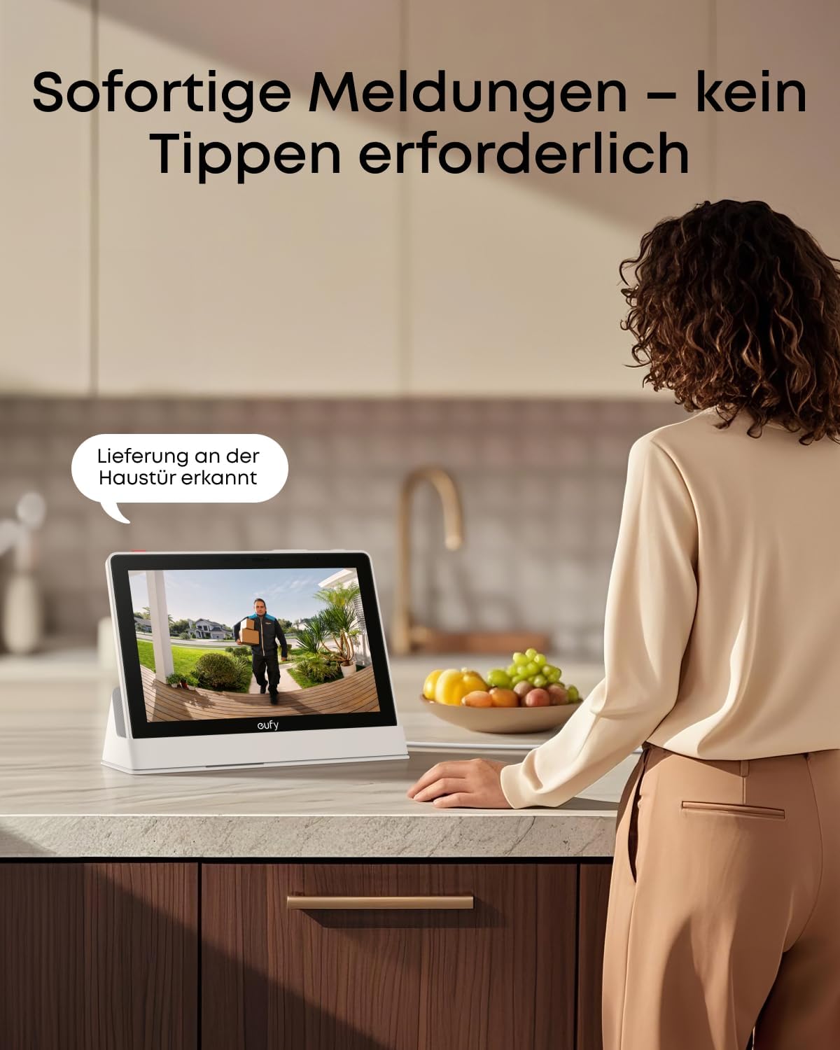eufy Smart Display, Smart Home Hub, 8-инчов контролен панел, съвместим с устройства за сигурност eufy, 4 изгледа на 1 дисплей, съобщения в реално време, дневни отчети, без ABO, управление с 1 щракване