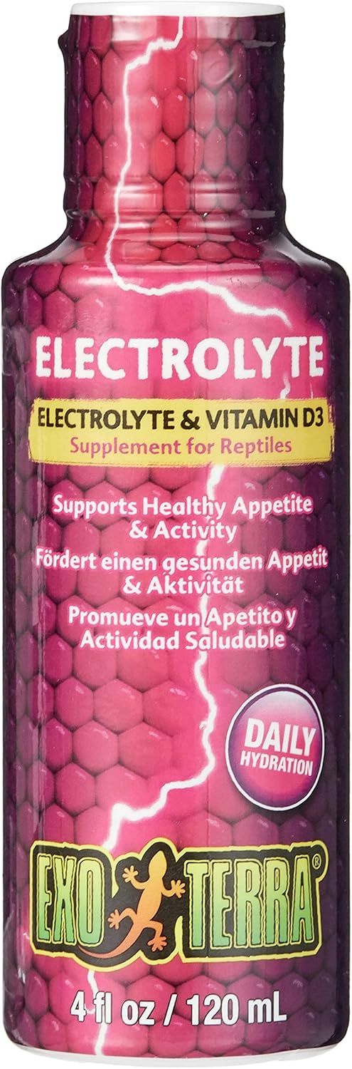 Електролитите са минерали (магнезий, калий, натрий и калций), които се губят при различни видове дехидратация, особено по време на стресови ситуации. Електролитът поддържа балансиран електролитен поток в телесните течности и осигурява витамин D3 за адекватно усвояване на калций. Витамин D3 е от решаващо значение за влечугите в плен, които не са изложени на UV светлина, като помага за предотвратяване или обръщане на метаболитни костни заболявания.