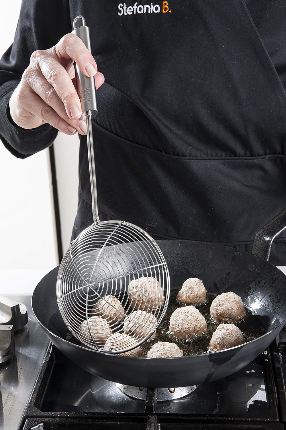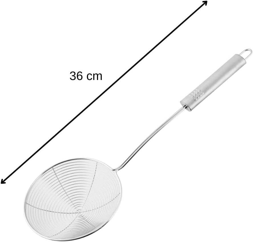 • Многофункционална: Лъжицата за цедене е идеалният помощник за прецеждане на зеленчуци, паста и пържени храни или за изваждане на по-големи ястия като кнедли или равиоли.