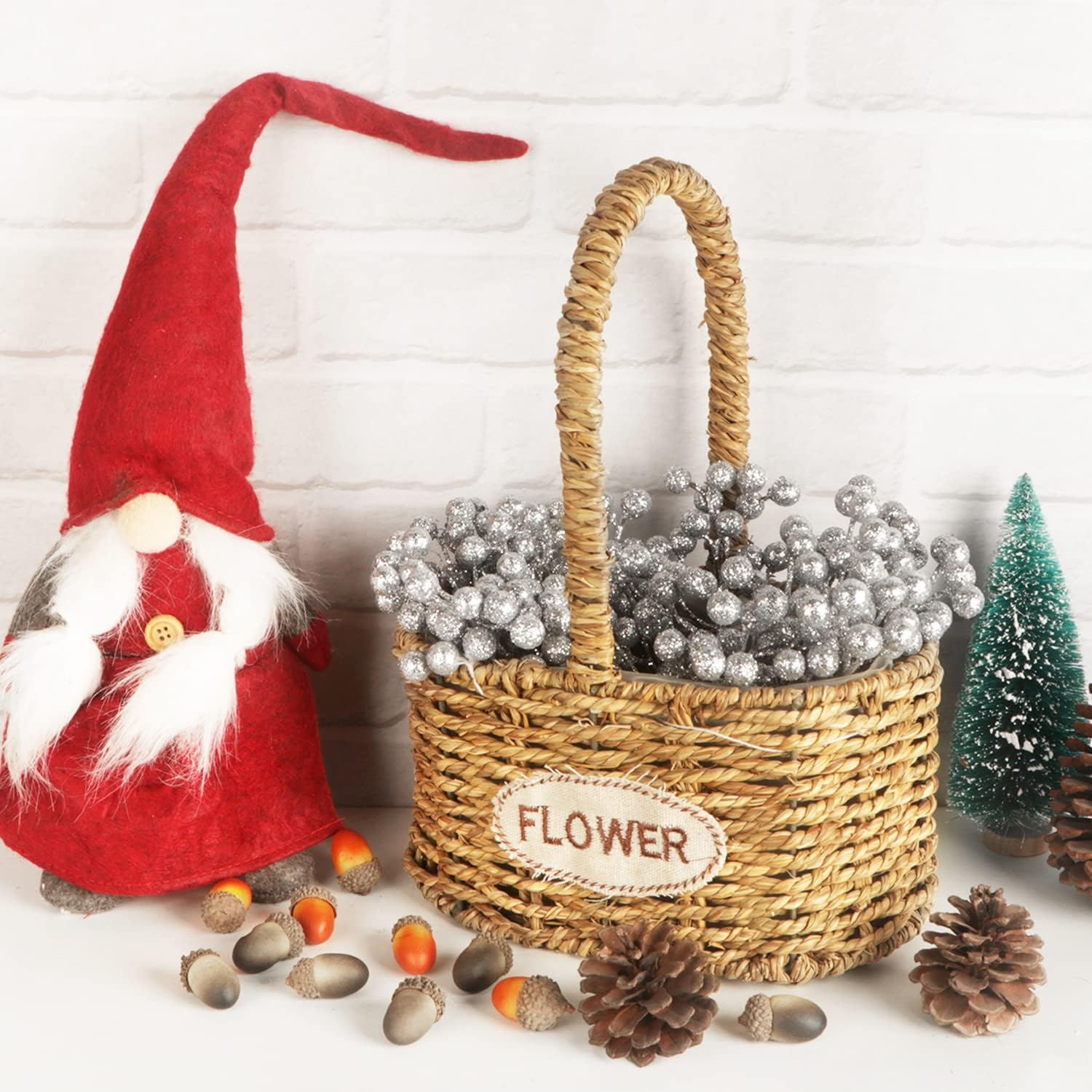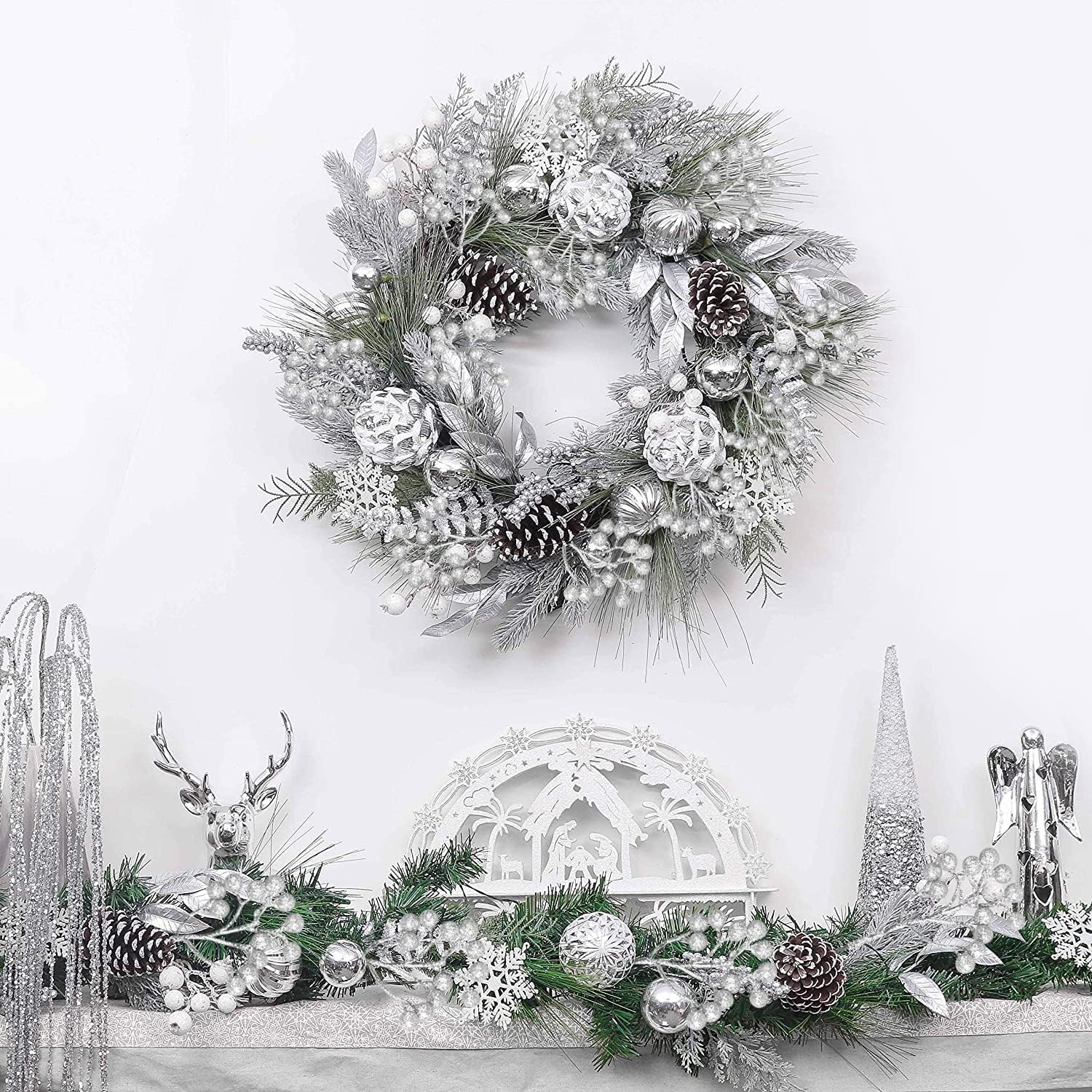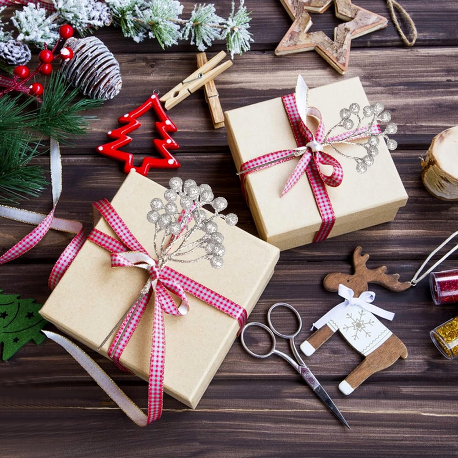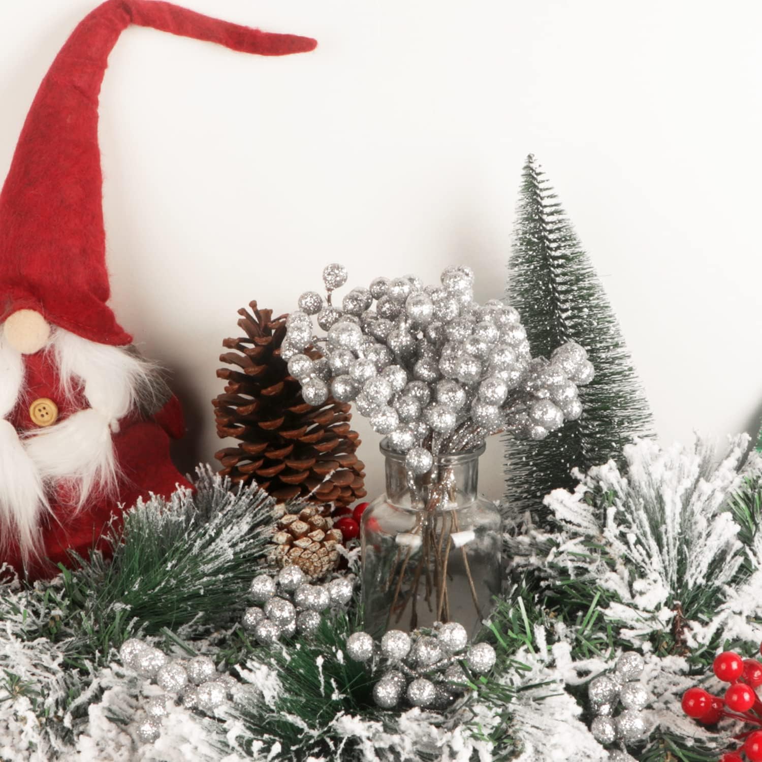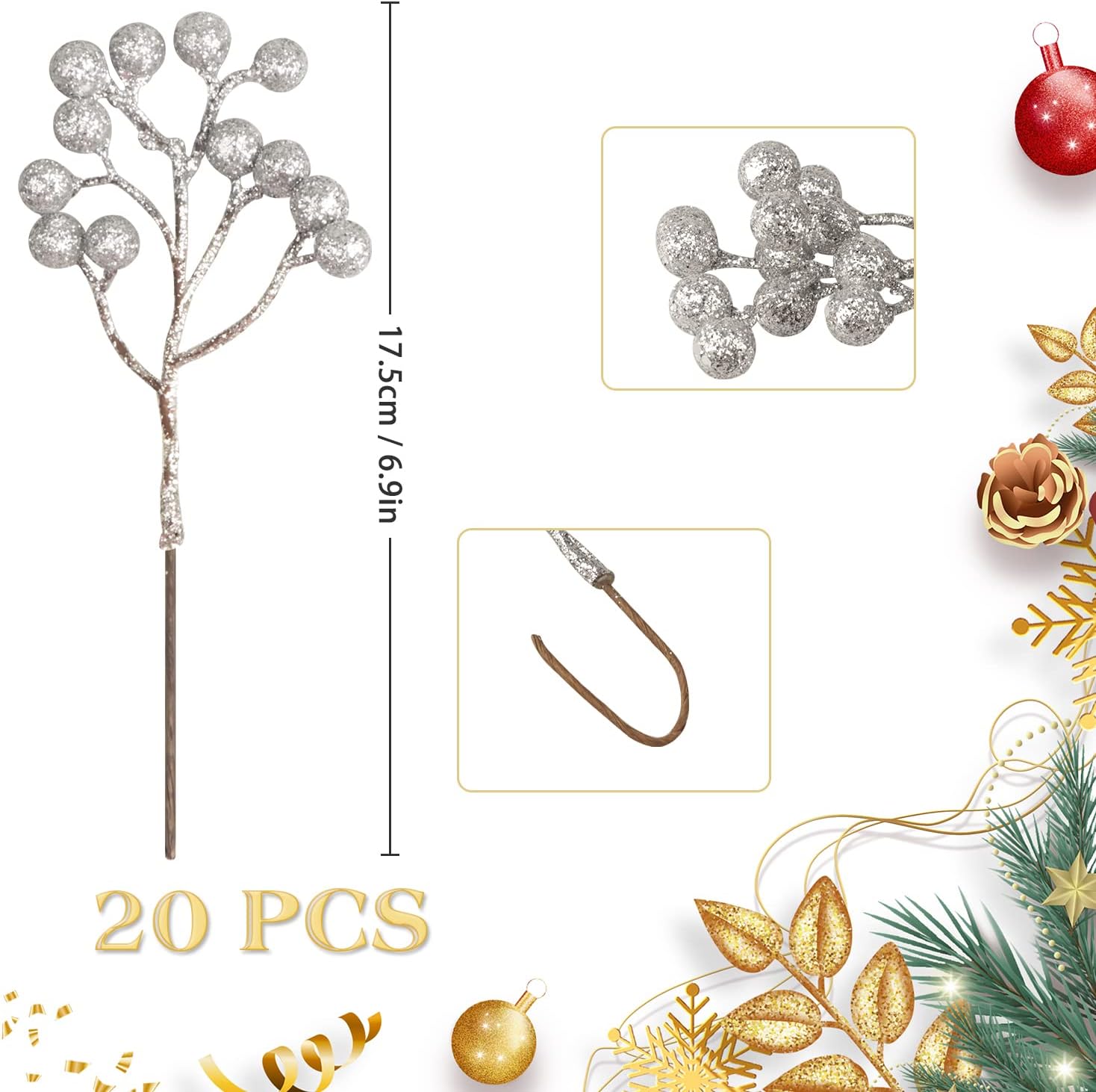Fangoo 20 броя, 18 см, изкуствени сребърни плодове за коледна украса за елха, клонки от джел, декорации за коледен дом, джел за занаяти, зимна празница, сватбена украса