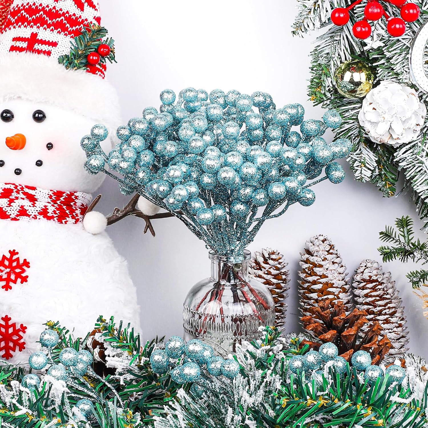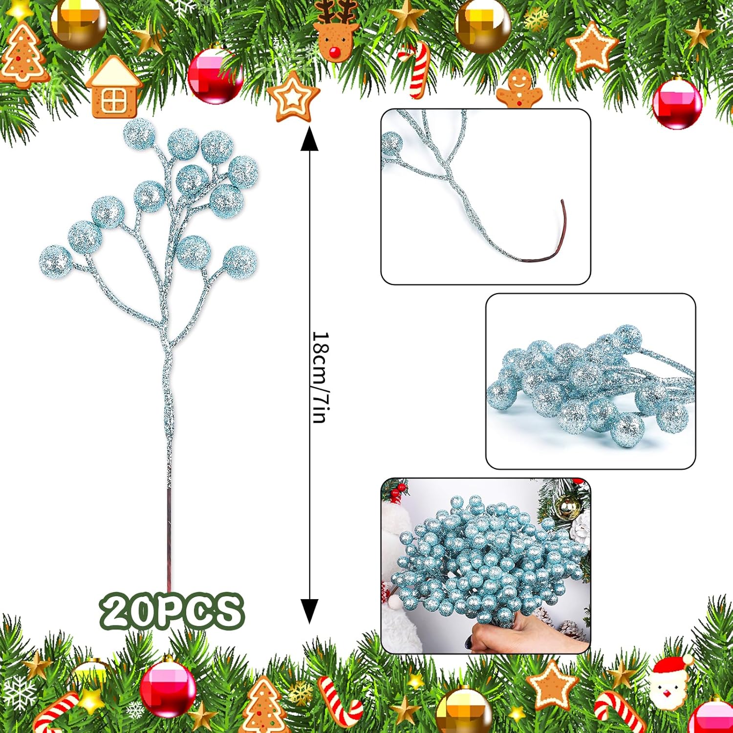 Fangoo 20 броя, 18 см, изкуствени светлосини плодове за коледна украса, клонки от джел, декорации за коледна украса, домашен декор, джел, занаятчийски изделия, зимна украса, сватба