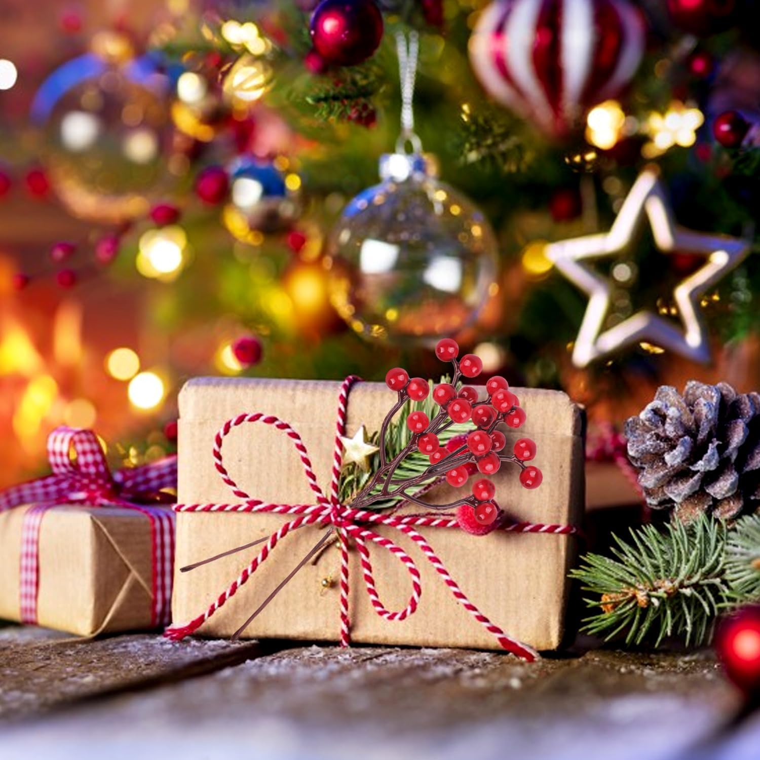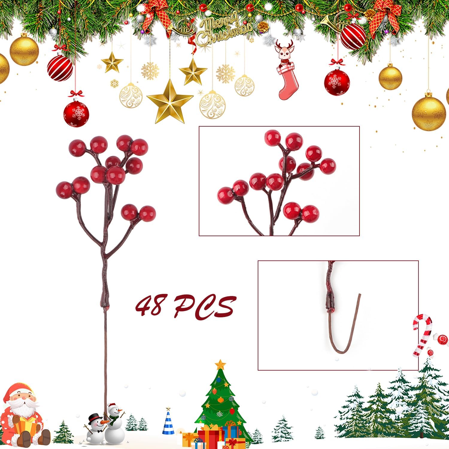 Перфектна украса за коледна елха, изкуствените червени плодове са идеални за украсяване на вашата коледна елха и засилване на коледната атмосфера.
