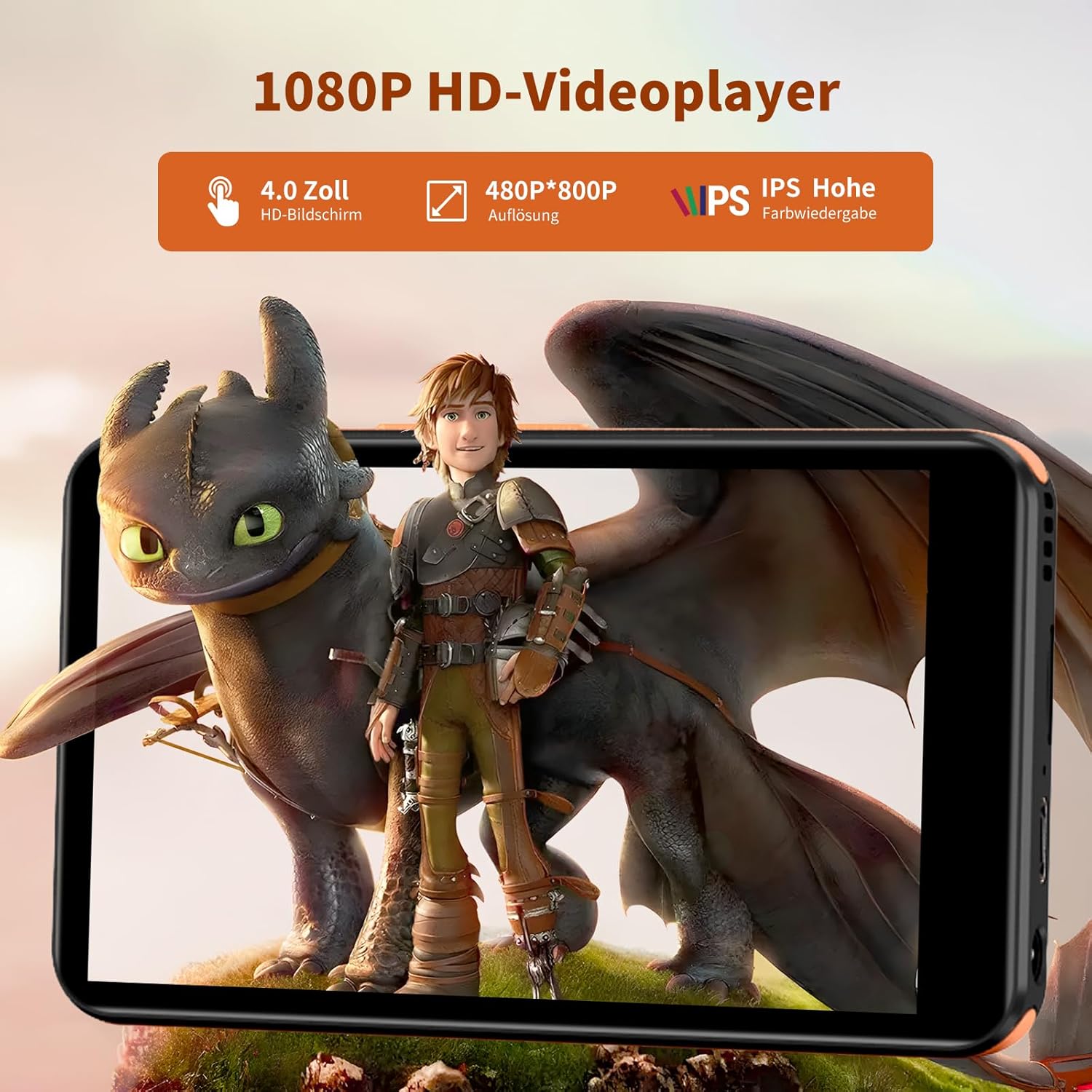 • Отлично изображение за MP4 плейъри: Този WiFi MP4 плейър има 4-инчов HD сензорен екран с изключителна резолюция, който оживява всеки детайл от любимите ви филми, видеоклипове и снимки с кристално ясна яснота. Поддържа видео формати като RM, RMVB, FLV, MP4, DAT, MKV, MPG, MOV, TS и т.н., които могат да се възпроизвеждат директно без конвертиране, осигурявайки ви несравнимо изживяване при гледане.
