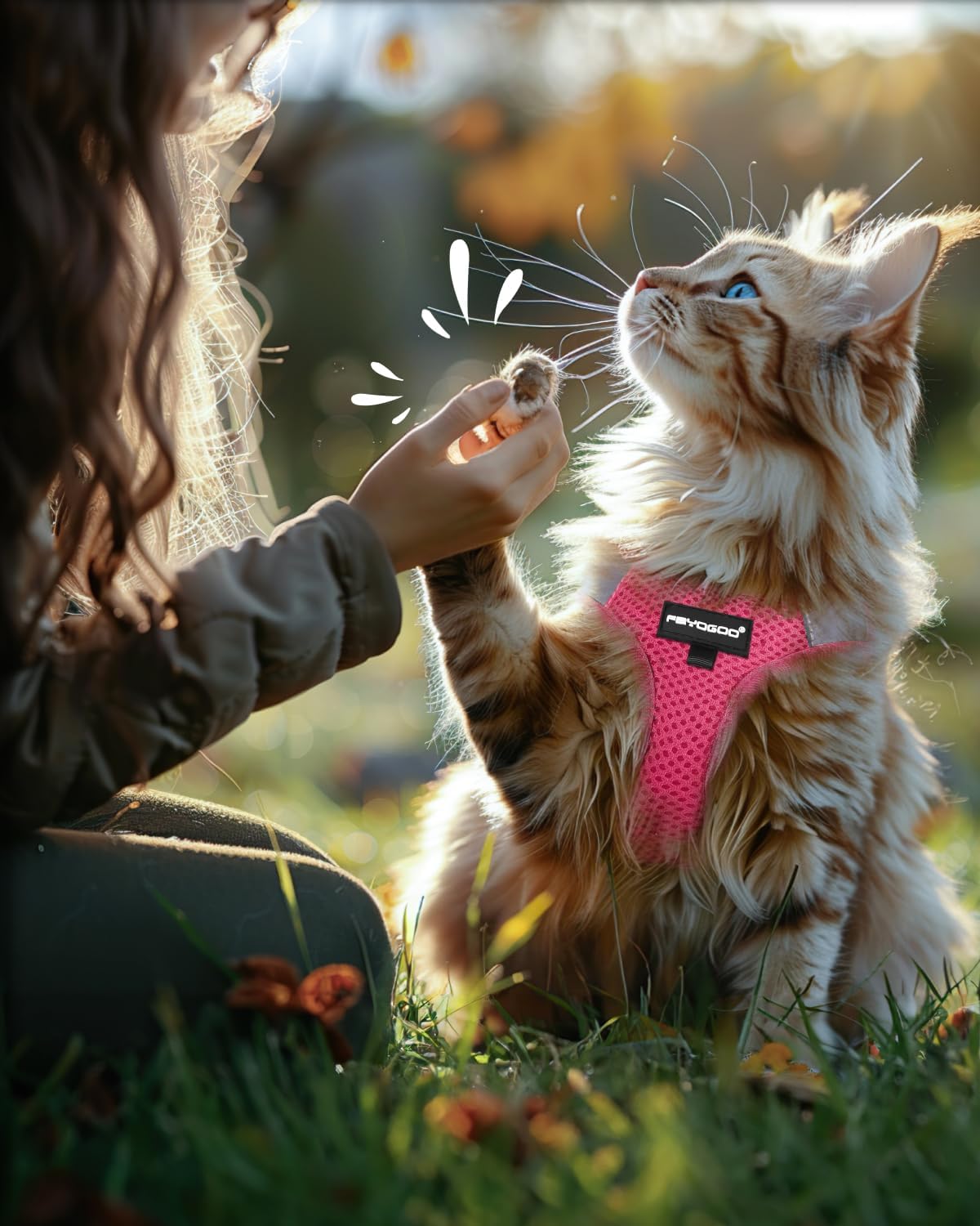• Подходящ за котки с различни размери и породи: нашият регулируем колан за котки се предлага в 4 размера - S (20-25 см), M (25-30 см), L (30-35 см), XL (35-40 см) - идеален за малки, средни и големи котки, както и за котенца, възрастни, BKH котки, Мейн Куун и Бенгалски котки. Ако вашият домашен любимец е между размерите, препоръчваме по-голям размер, за да осигурите оптимално прилягане към тялото и комфорт по време на всяка дейност.