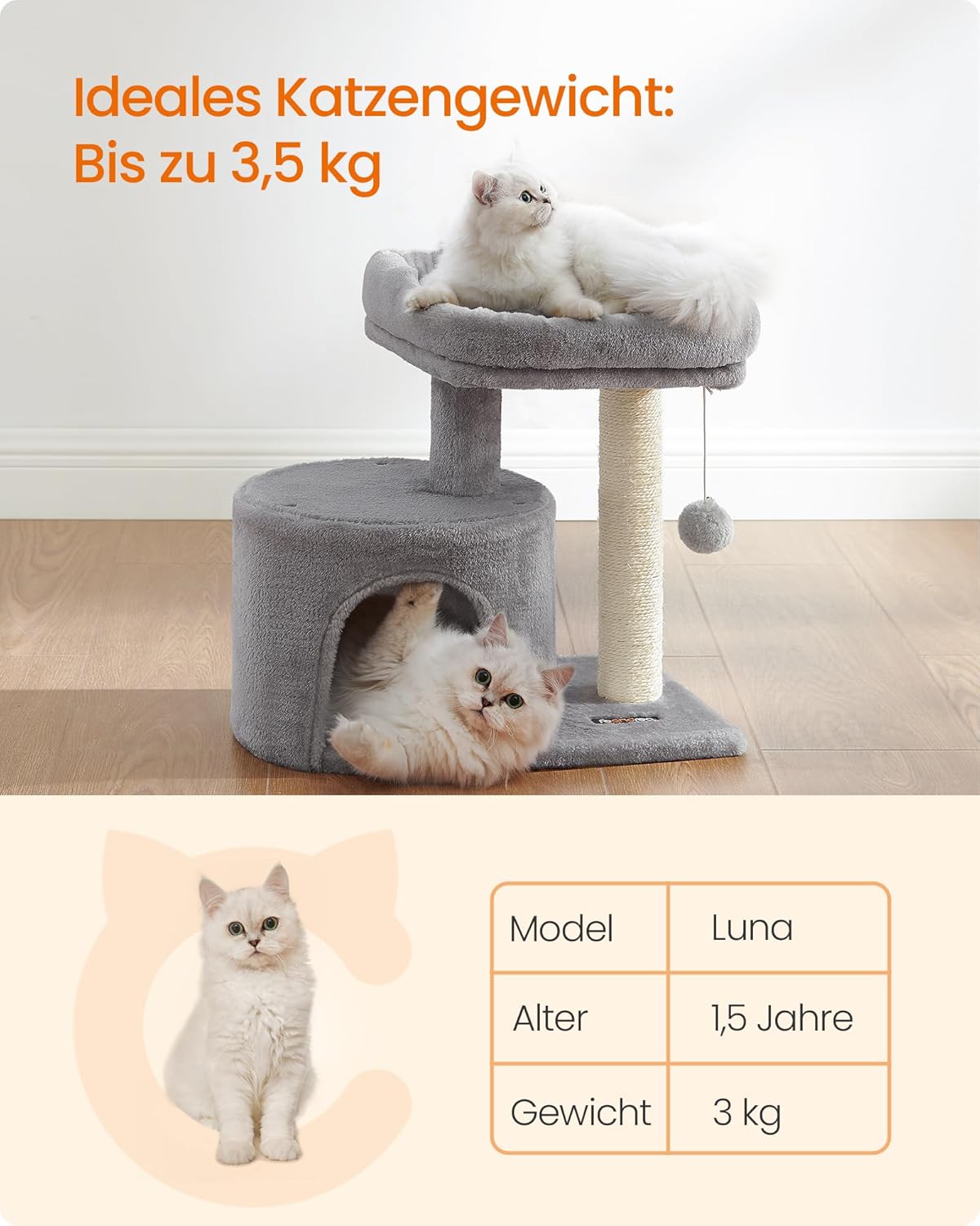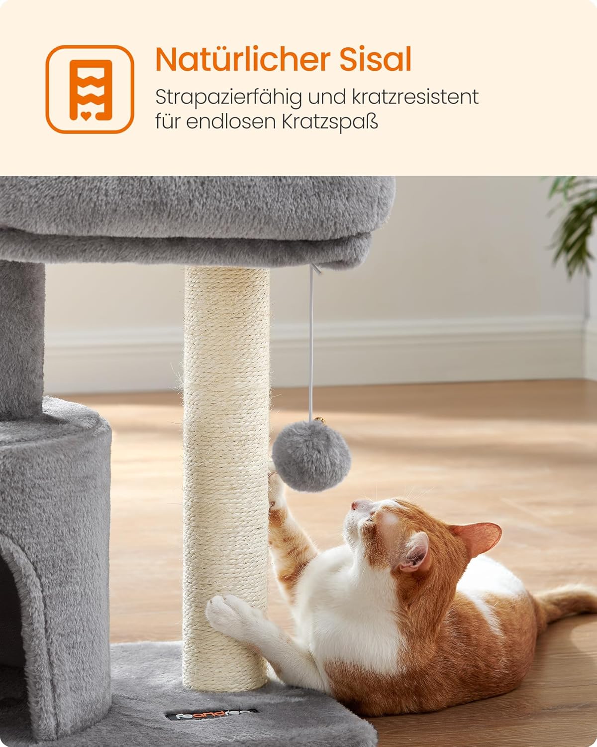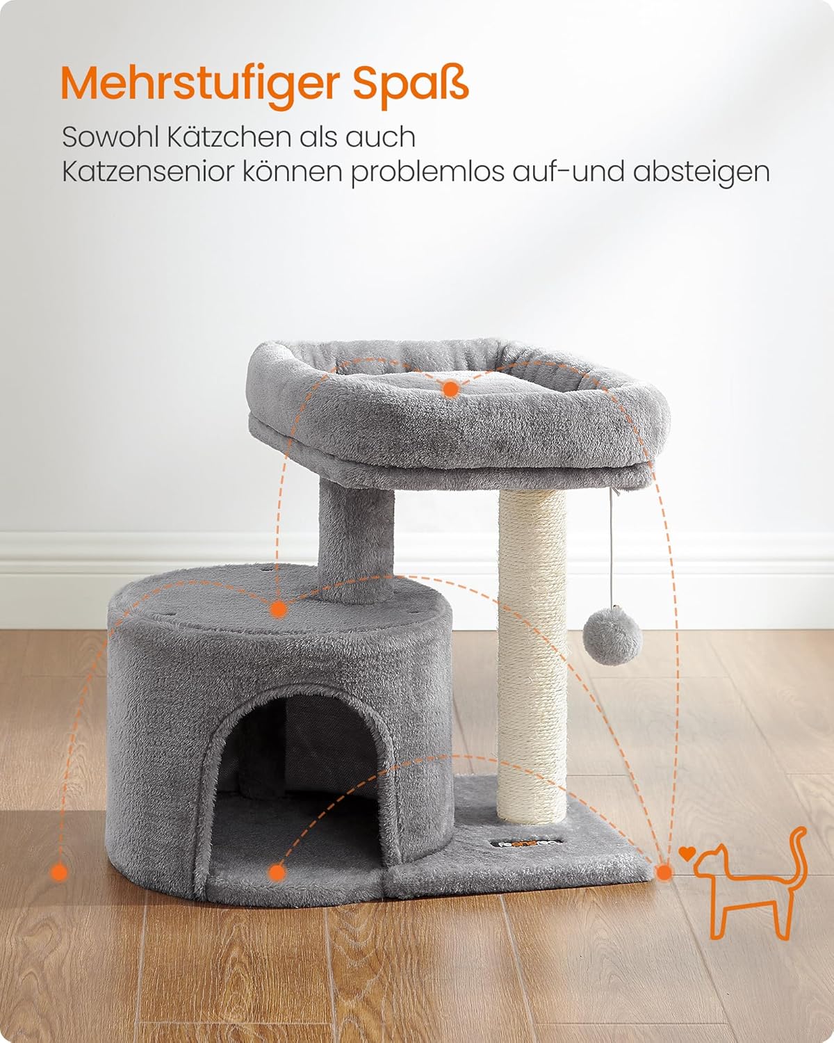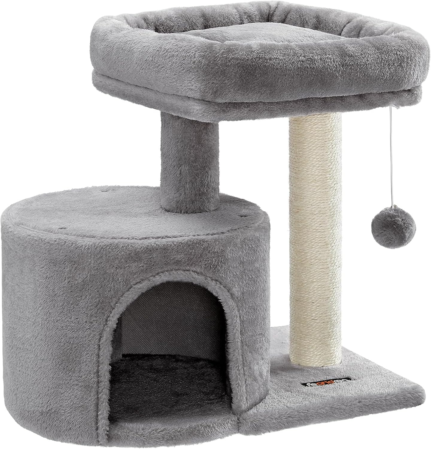 Feandrea PCT50W Малка драскалка за котки със сизалов стълб с подплатена платформа за котенца, светло сива