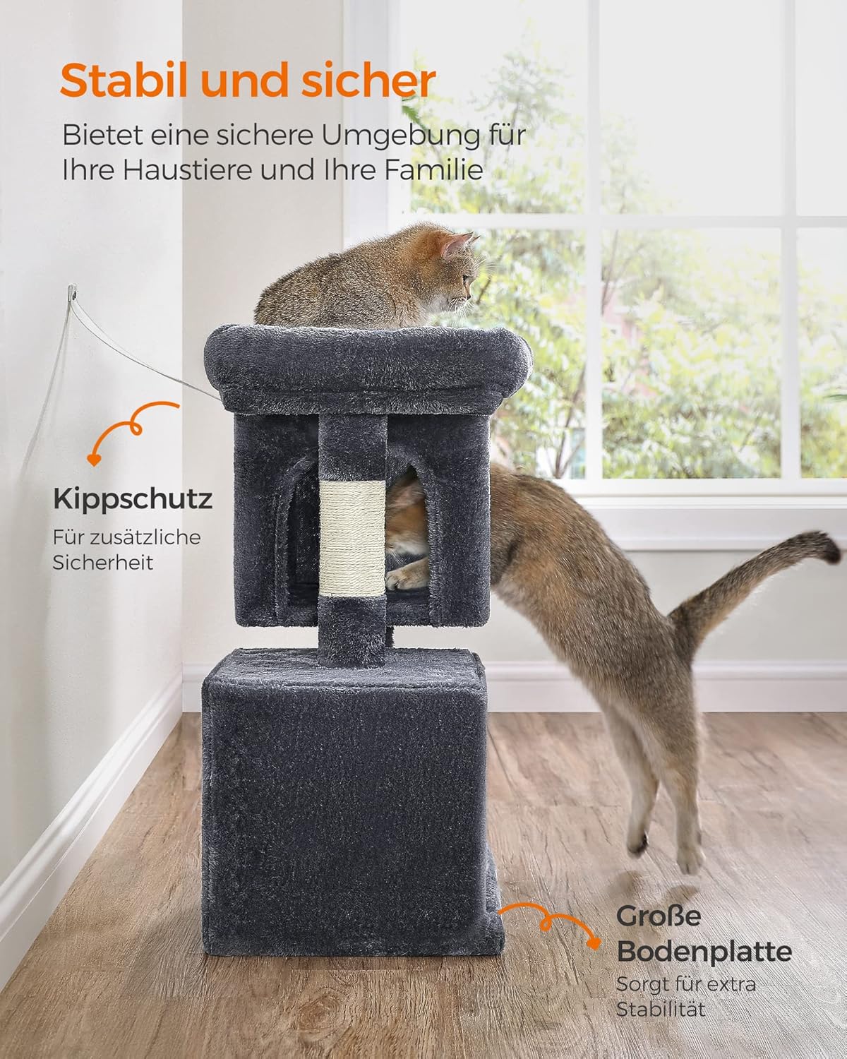Цвят: СветлосивМатериал: ПДЧ, плюш, сизалРазмери: 40 x 30 x 67 см (Д x Ш x В). Тегло: 6 кг