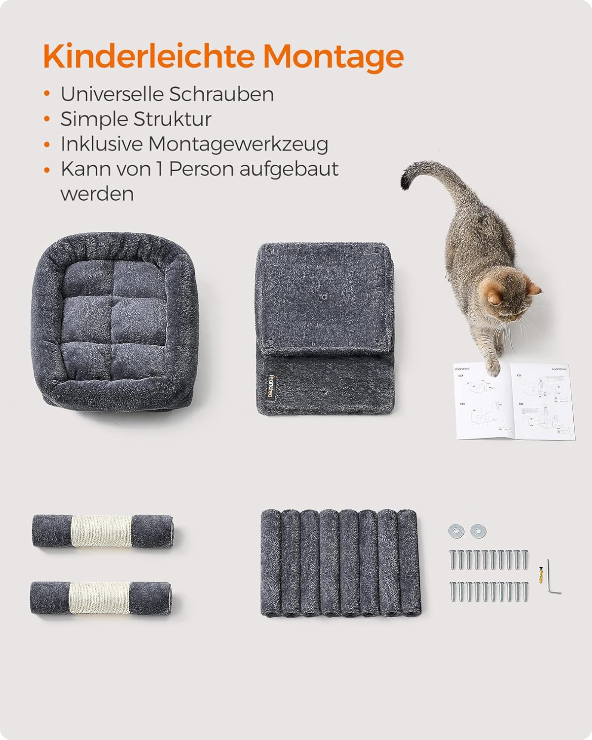 Ако котешката пещера е повредена, моля, поправете я или я сменете навреме, за да избегнете наранявания, причинени от повредени части. Тъй като котките обичат да скачат и да играят, моля, прикрепете драскалката към стената с включената защита от накланяне, за да я използвате безопасно.