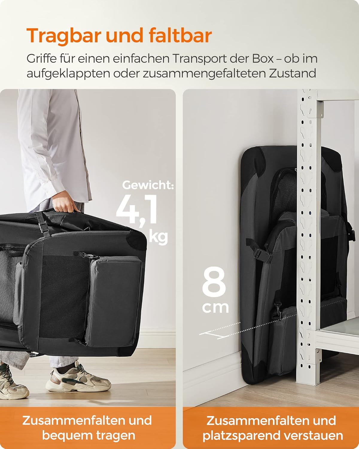 The dog bag can be easily folded up. So it is not only practical to store, but also easy to transport.