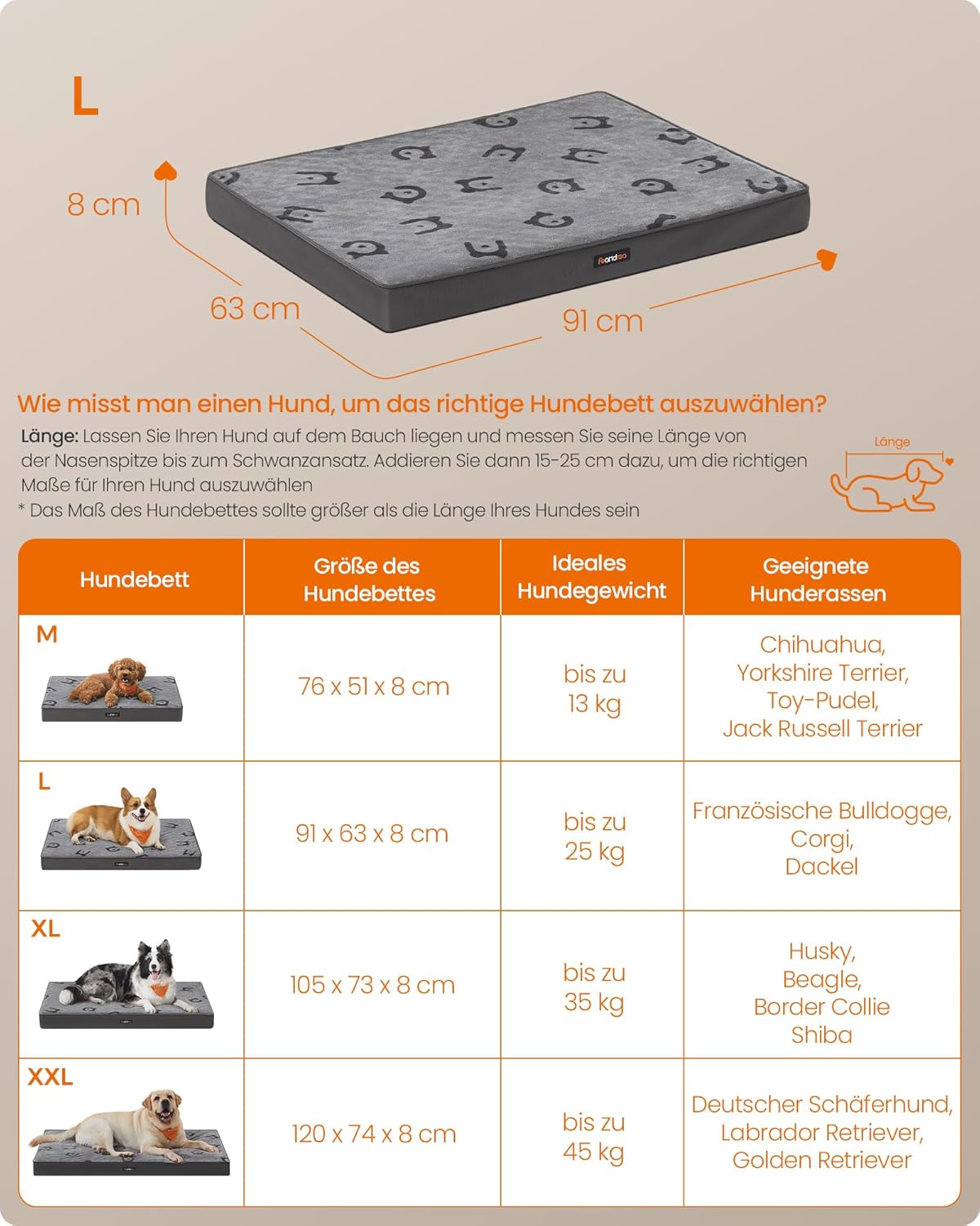 Повърхността от фланел 240 GSM е мека и удобна, страните и дъното, изработени от изключително дебела оксфордска материя 1680D, са издръжливи.