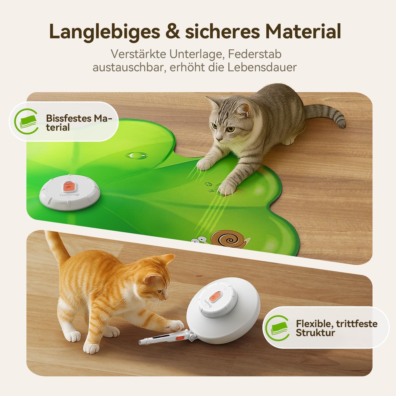 • Интерактивна игра на криеница 2 в 1: Интерактивната играчка за котки FEELNEEDY имитира лов на риба с пера под одеяла и стимулира естествените ловни инстинкти и любопитство на котките. Подвижните LED светлини насърчават визуалната, акустичната и физическата активност. Насърчава активната игра (скачане, лов) за борба със скуката, намаляване на тревожността и предотвратяване на затлъстяването при домашните котки.