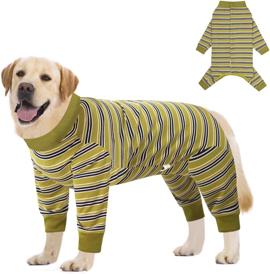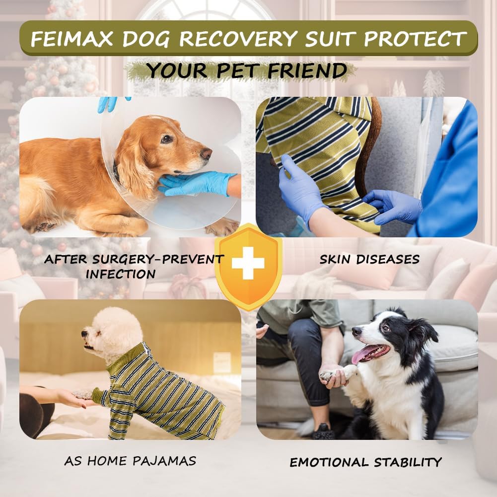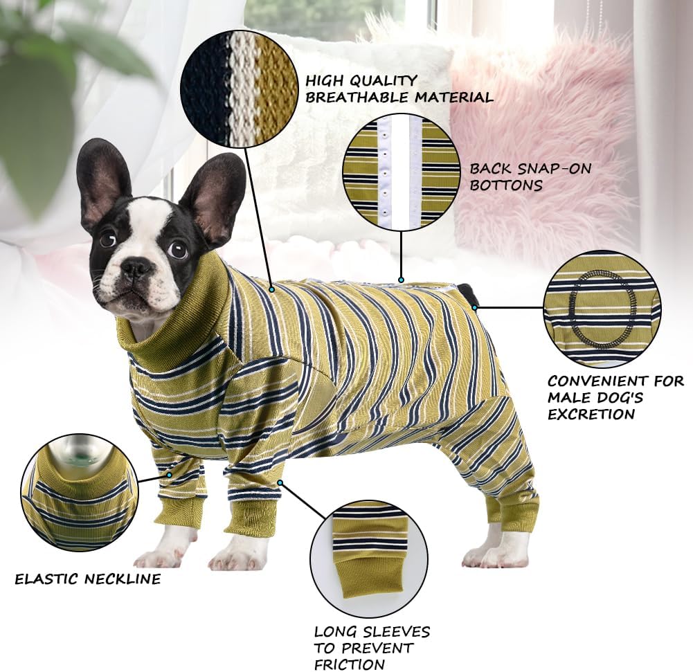 FEimaX Боди за кучета след операция, Боди за кучета след кастрация, Женски и мъжки кучета, Костюми за защита на рани за кучета след операция, Костюм за възстановяване с дълъг ръкав за малки, средни и големи кучета (горчично зелено, S)