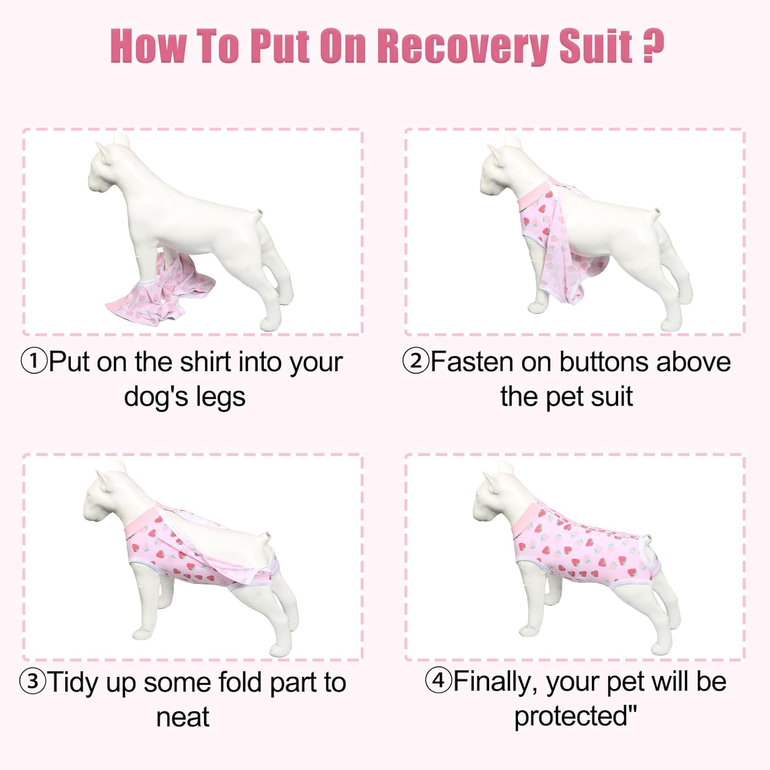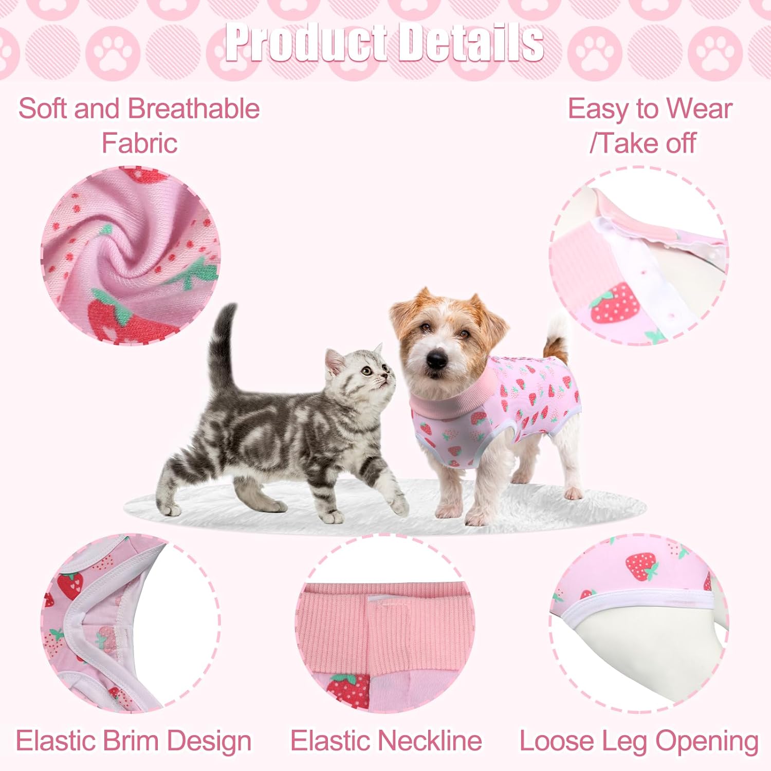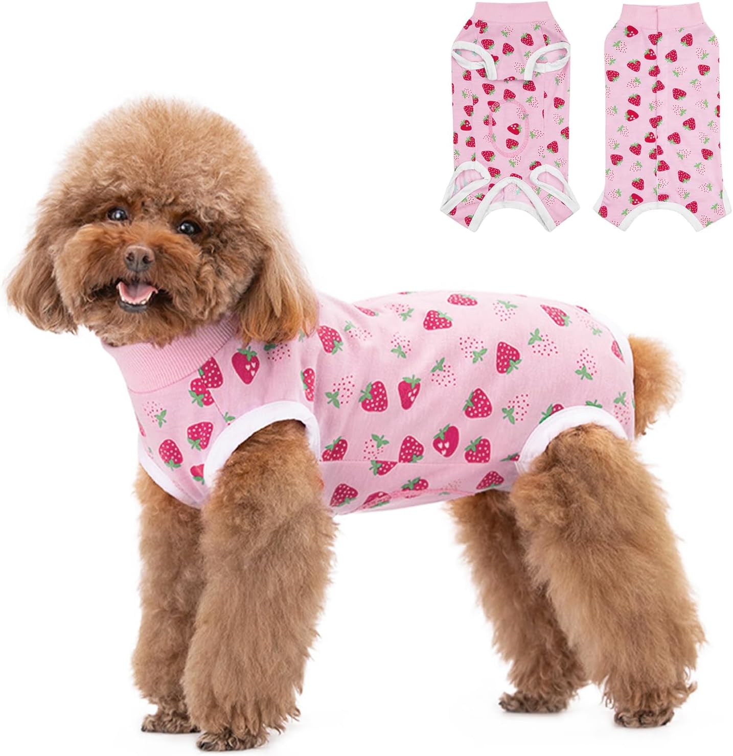 FEimaX Костюм за защита на рани след операция за кучета, Боди след кастрация за мъжки и женски кучета, Дишащо боди без ръкави за малки и средни кучета (Ягода, XXL)