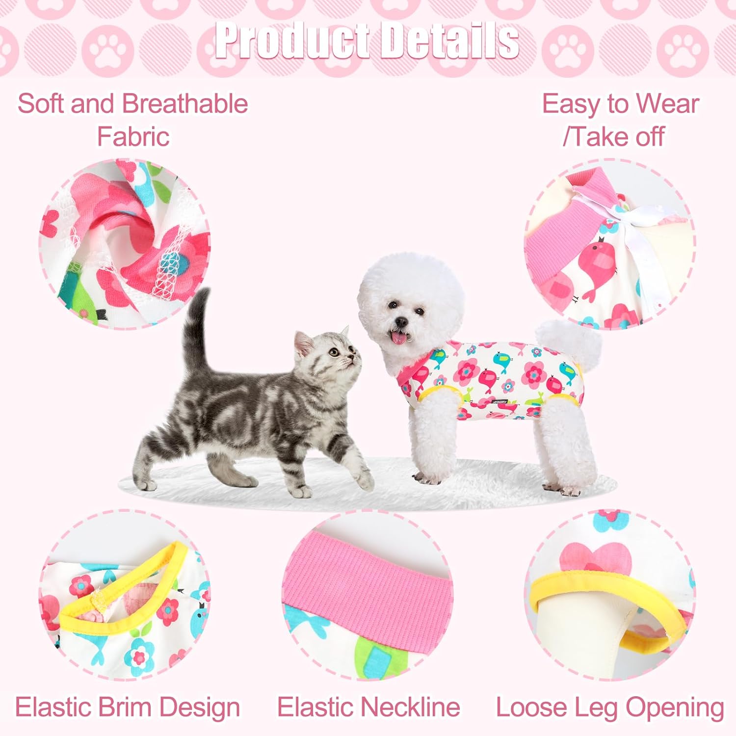 • Многофункционален: Този възстановяващ костюм за кучета може да се използва за кастрация и кастрация на мъжки и женски кучета, отбиване и грижа за коремни рани при кучета и котки. Той помага за предотвратяване на следоперативни инфекции, причинени от одраскване, близане или замърсяване, и облекчава тревожността на вашия домашен любимец.