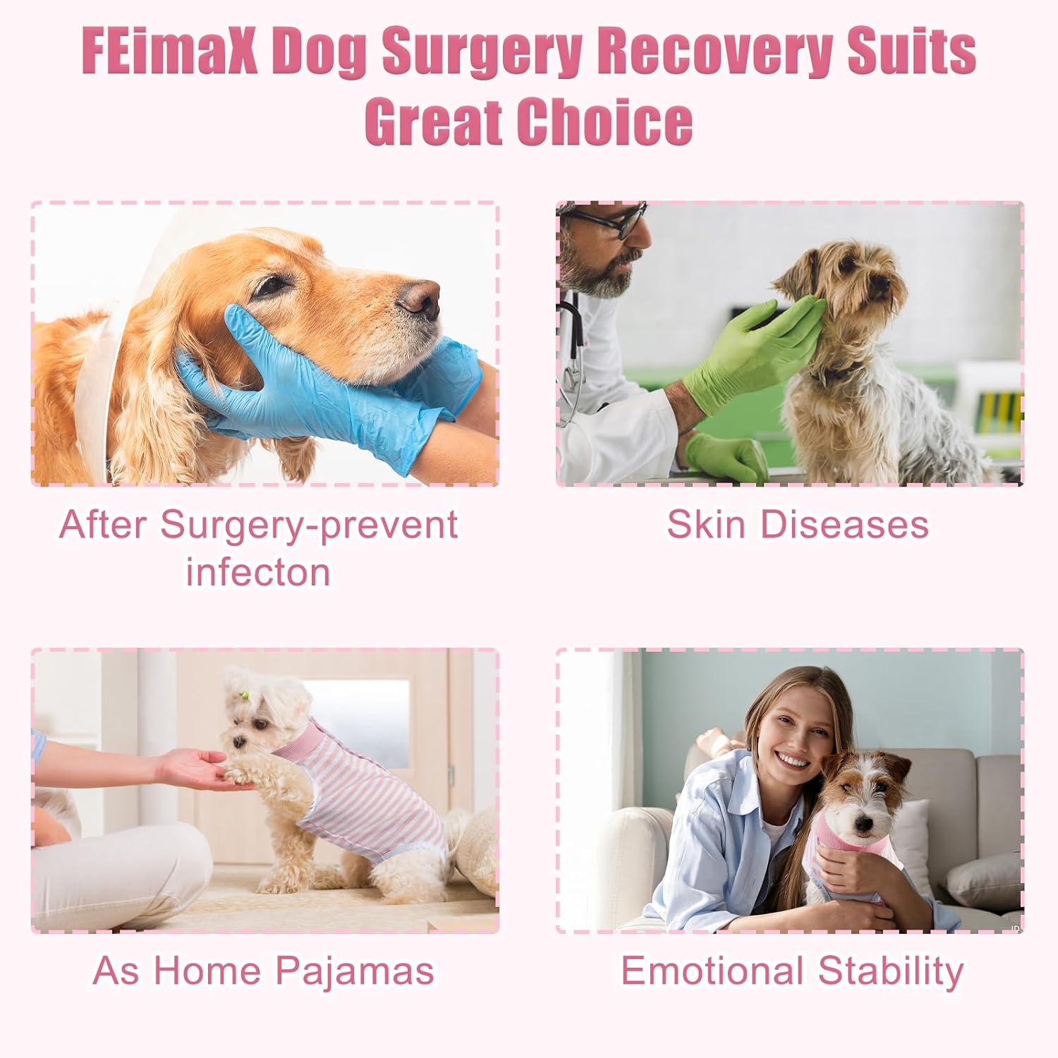FEimaX Костюм за защита на рани след операция за кучета, Боди след кастрация за мъжки и женски кучета, Дишащо боди без ръкави за малки и средни кучета