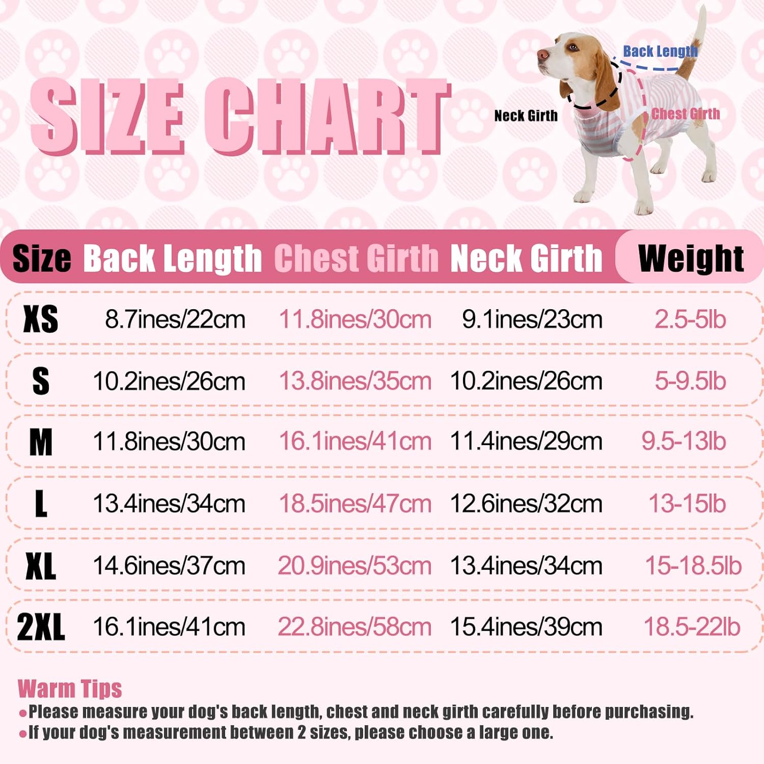• Различни опции: Следоперативният боди за кучета FEimaX се предлага в 6 размера (XS-XXL). Този костюм за защита от рани за кучета е подходящ за повечето кученца, малки и средни кучета и котки, като ши-тцу, миниатюрни дакели, пудели, бийгъли, коргита и други. Моля, внимателно измерете обиколката на гърдите и дължината на тялото на вашето куче и вижте таблицата с размери, тъй като кучетата се нуждаят от костюм за възстановяване за правилното заздравяване на следоперативните рани.