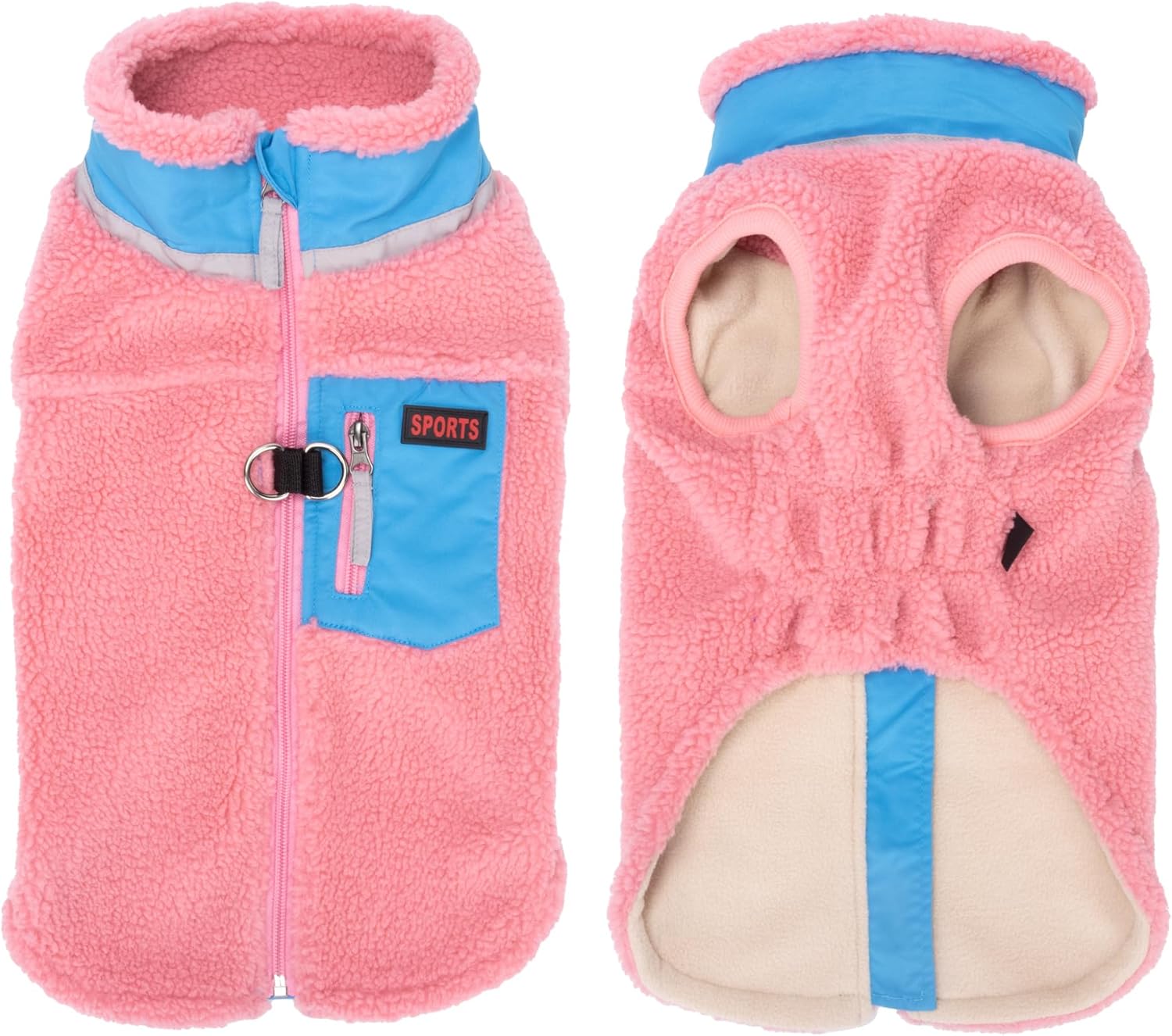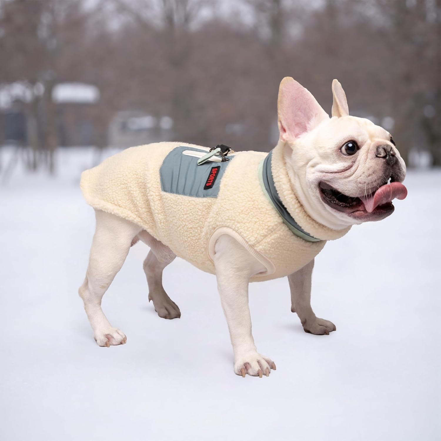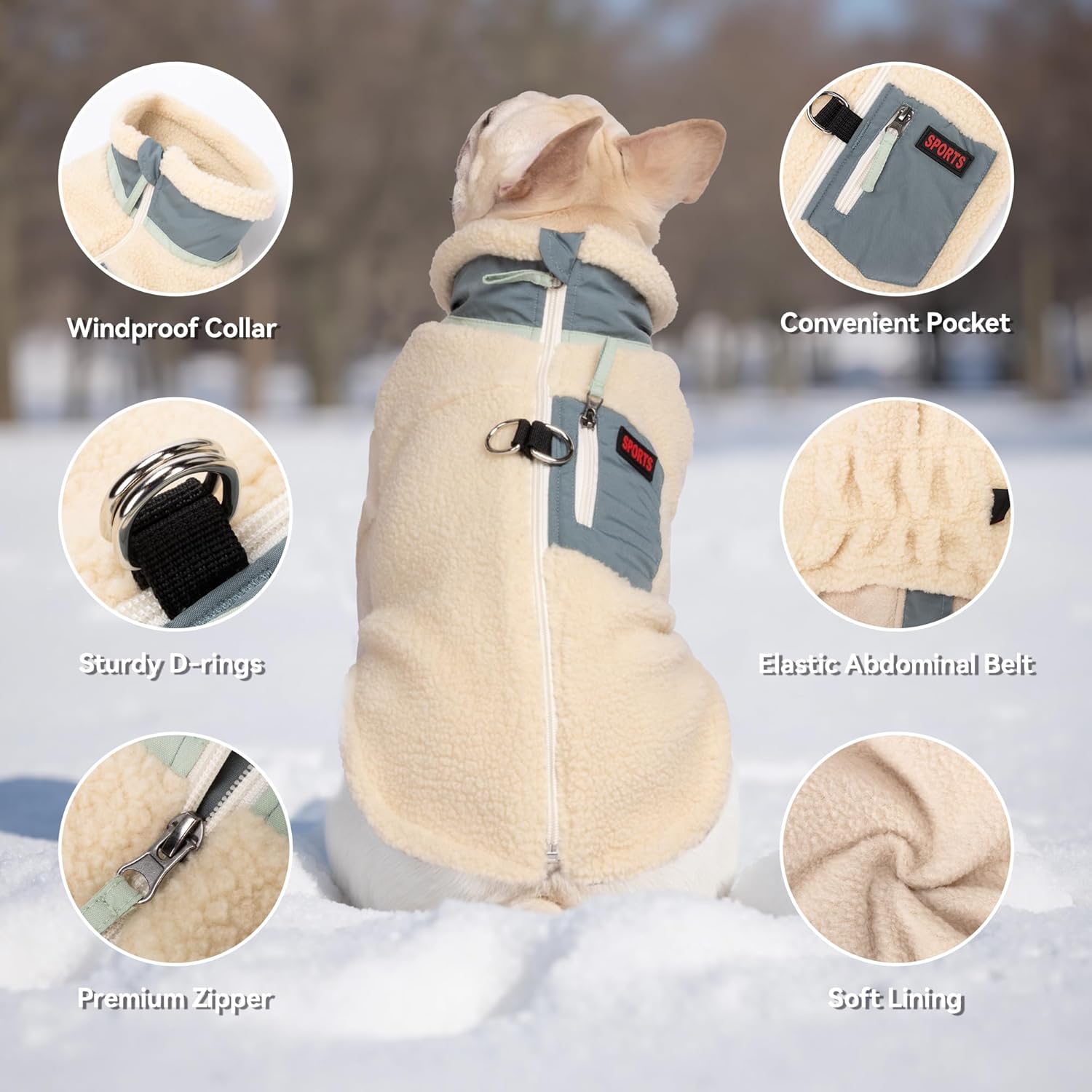 • УДОБЕН ЗАДЕН ДЖОБ Знаем, че собствениците на домашни любимци често трябва да носят малки предмети със себе си, когато са в движение. Ето защо сме прикрепили практичен и елегантен малък джоб на гърба на нашето поларено палто за домашни любимци. Така можете лесно да съхранявате ключове, лакомства, торбички за екскременти или други малки предмети, без да е необходима допълнителна чанта.
