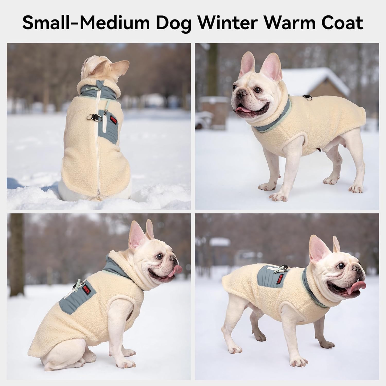FEimaX Топло кучешко палто, ветроустойчиво, зимно поларено яке за кучета, зимен жилет с D-образни пръстени, дрехи за кучета, яке за малки и средни кучета